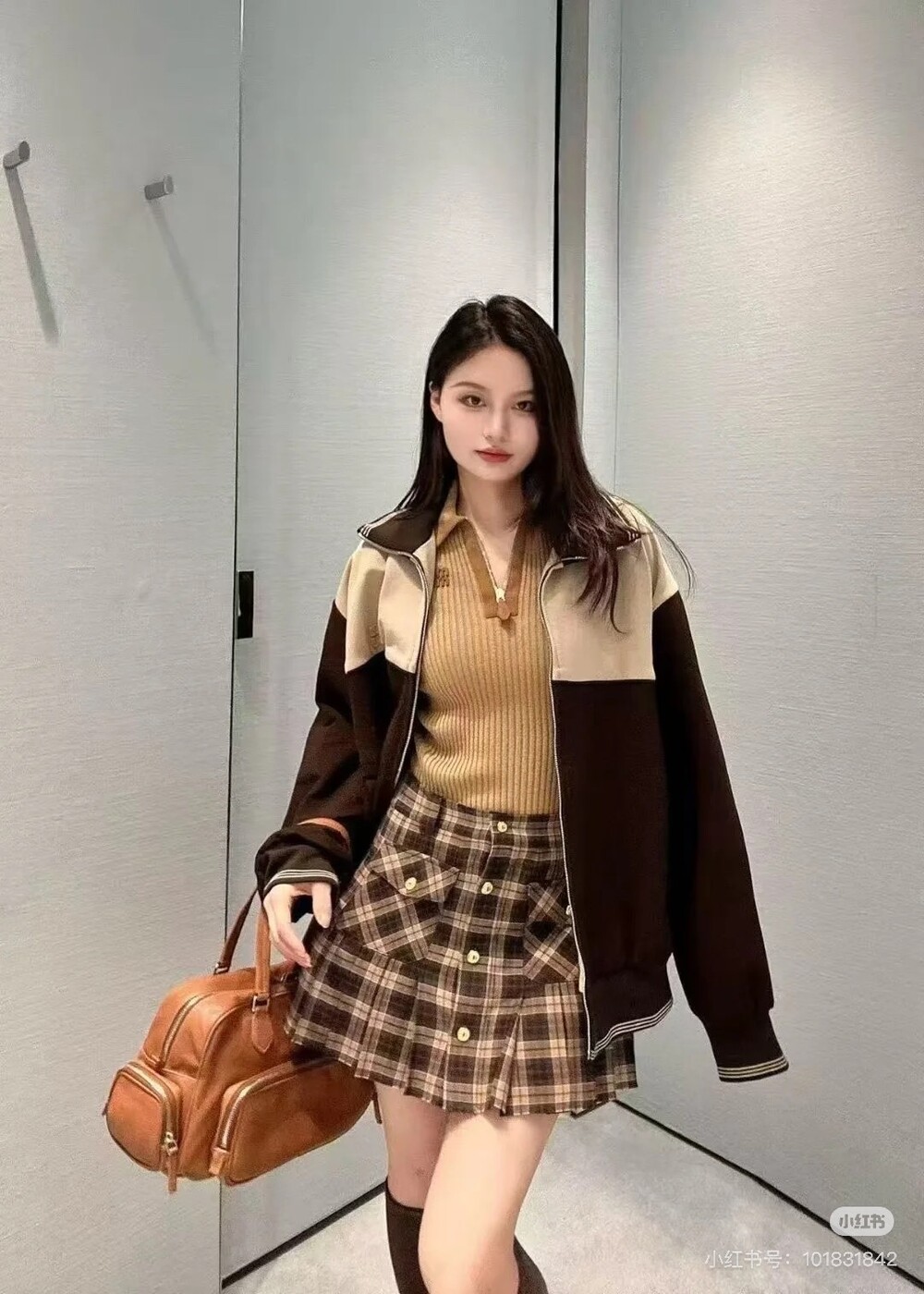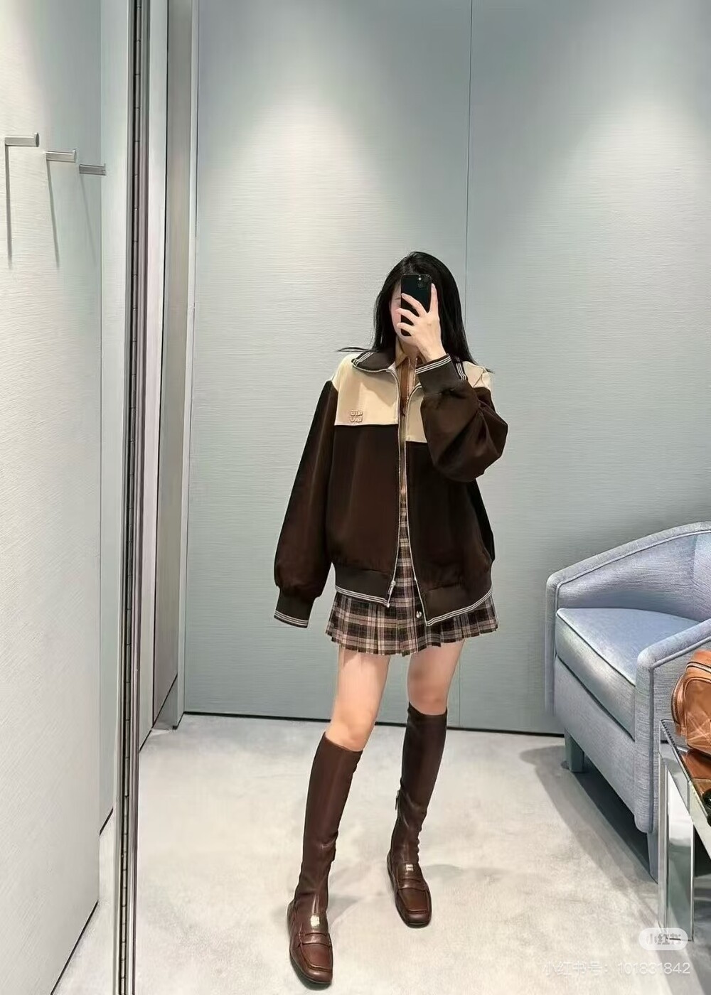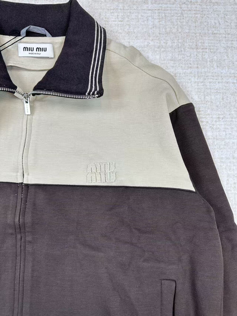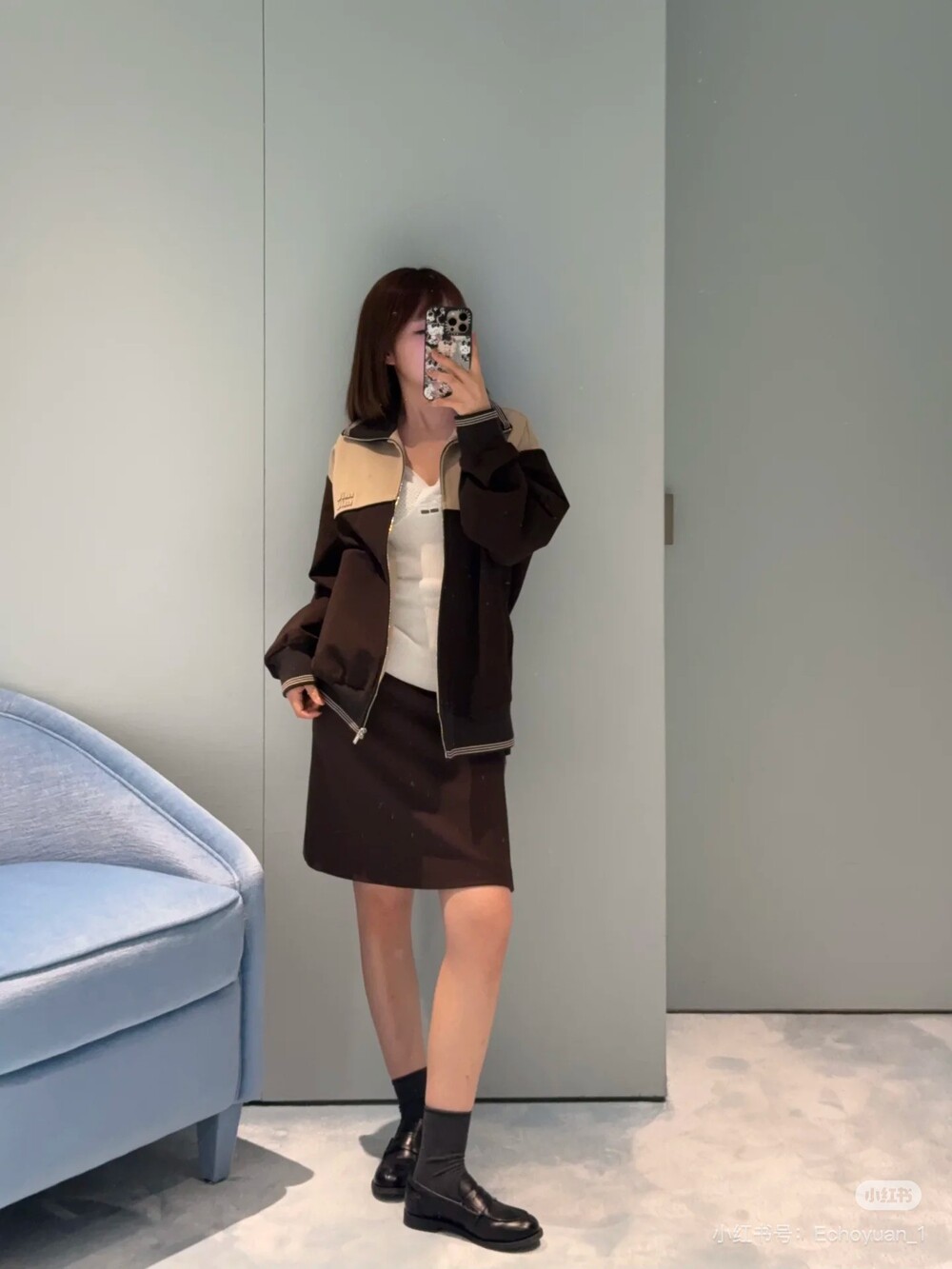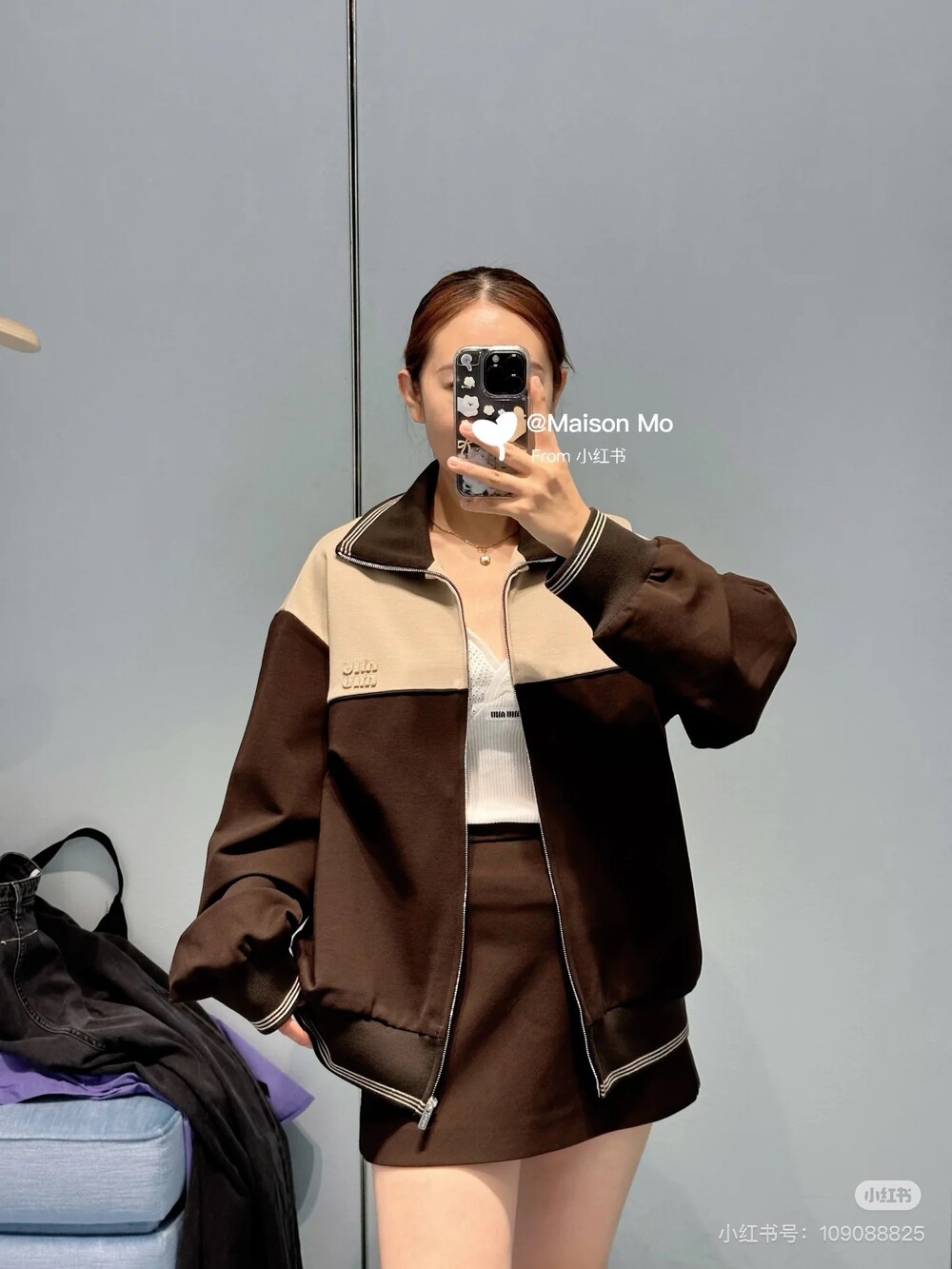 메일라드 컬러 스플라이싱 지퍼 재킷