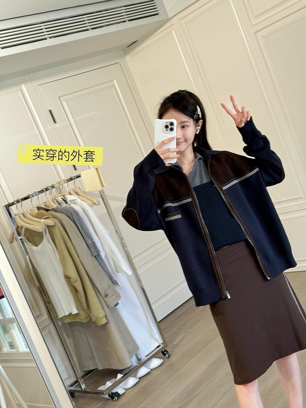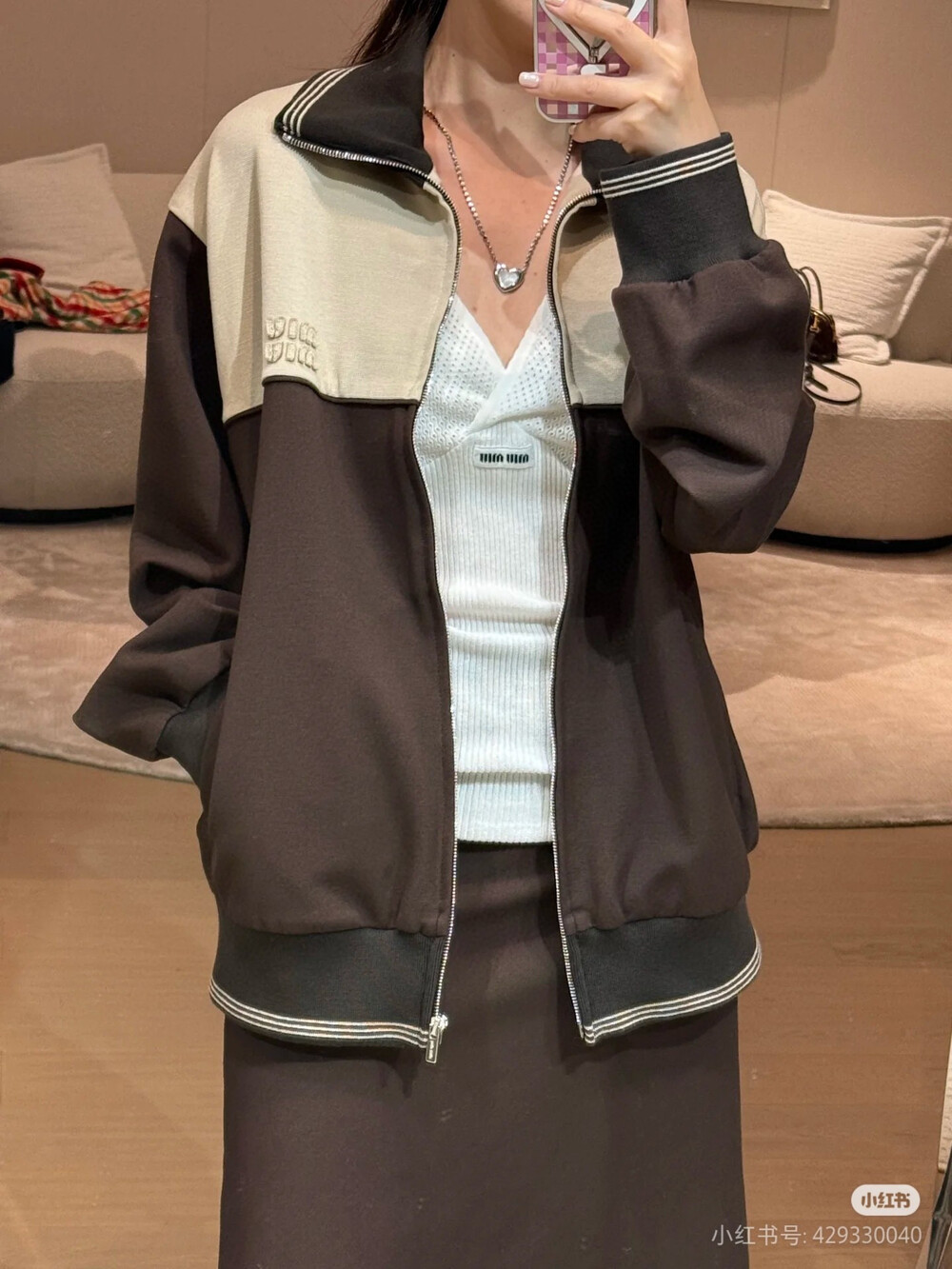 사선 지퍼 디테일은 어떤 룩에도 잘 어울립니다