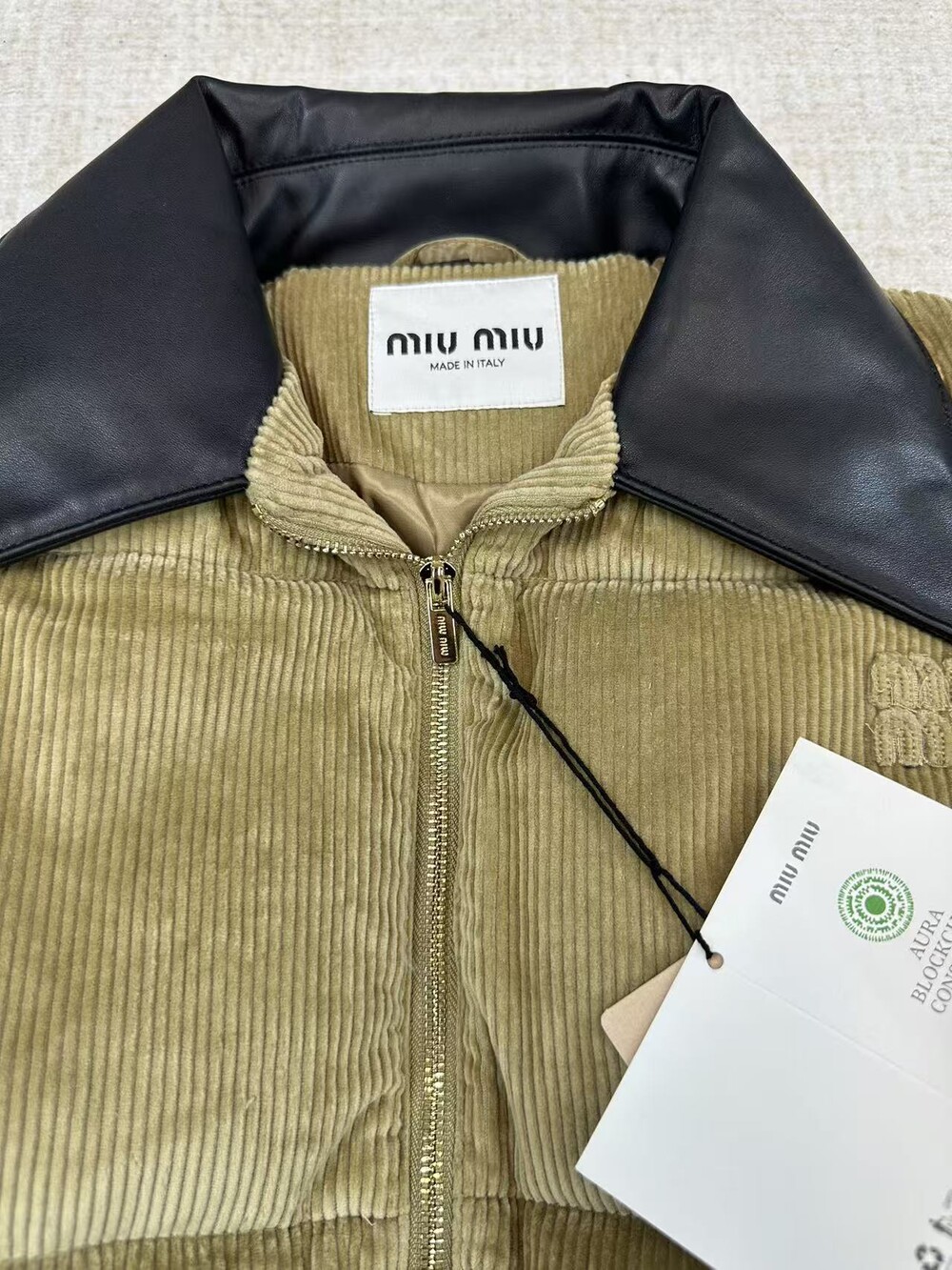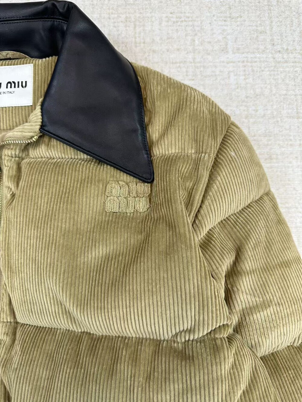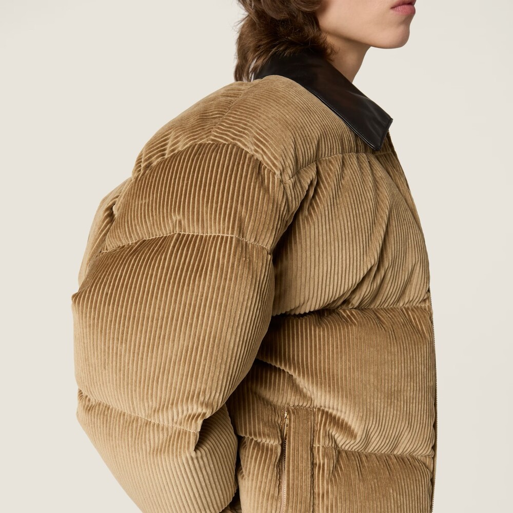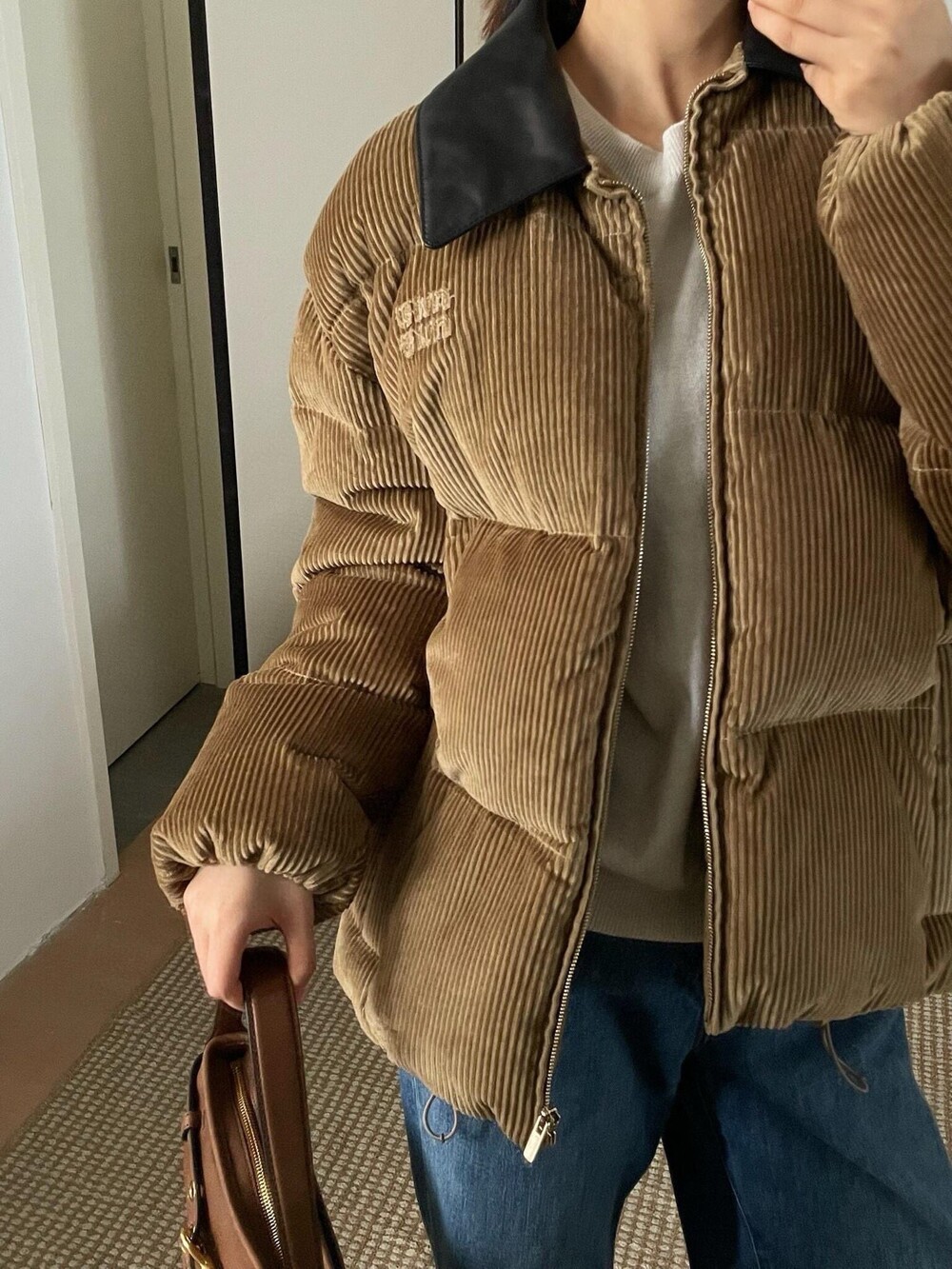 코듀로이 & 천연 가죽 칼라 다운 재킷 |
