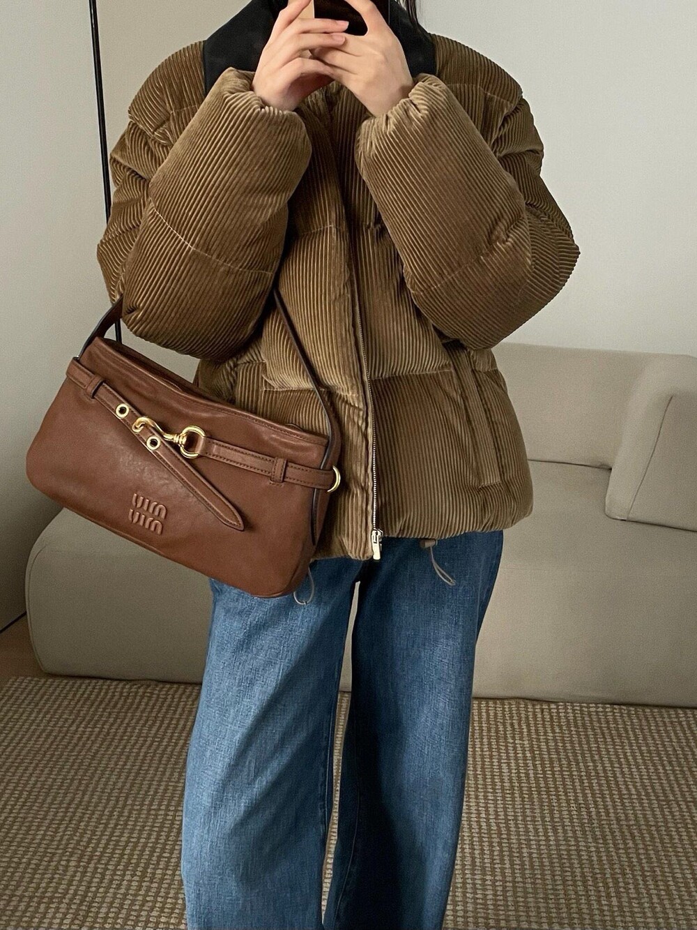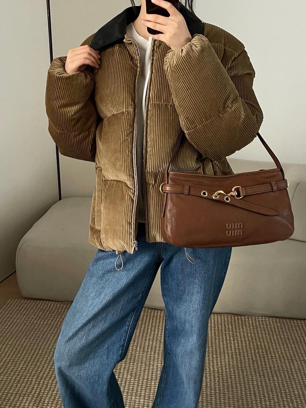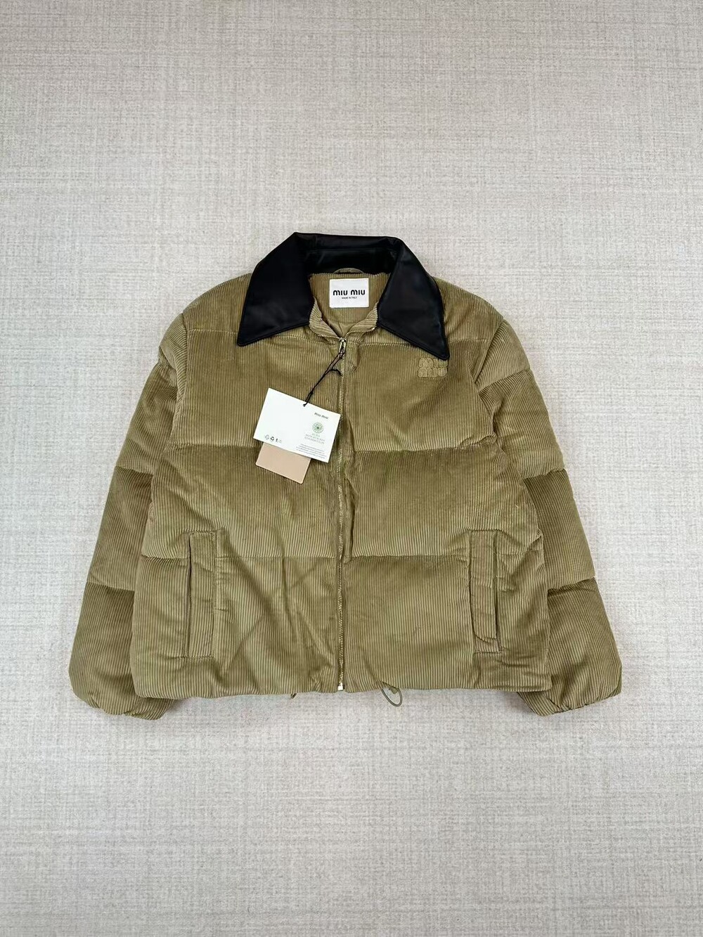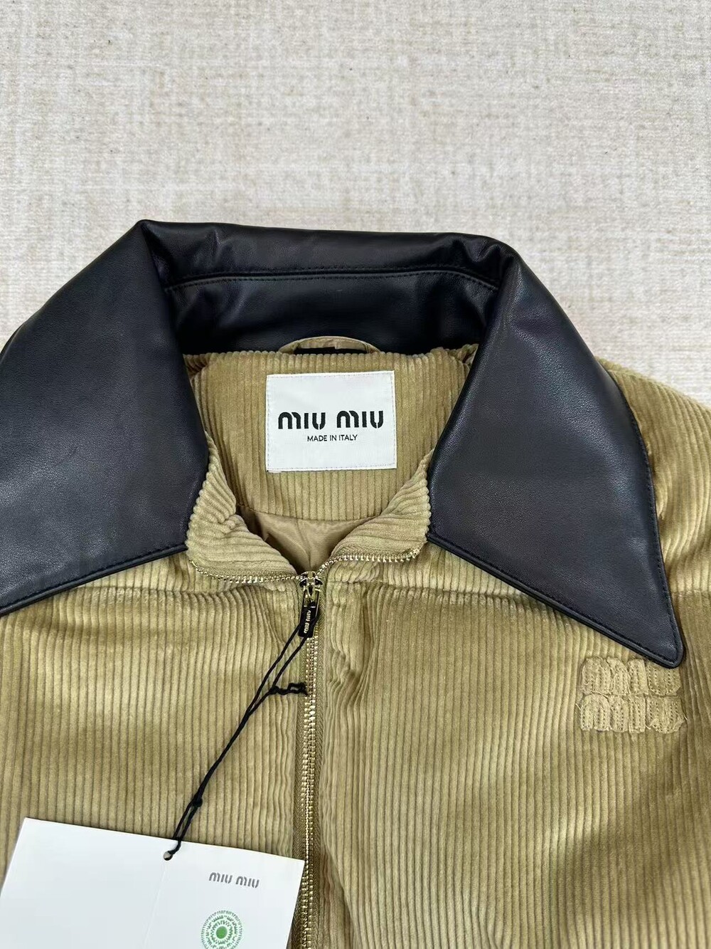 코듀로이 & 천연 가죽 칼라 다운 재킷 |