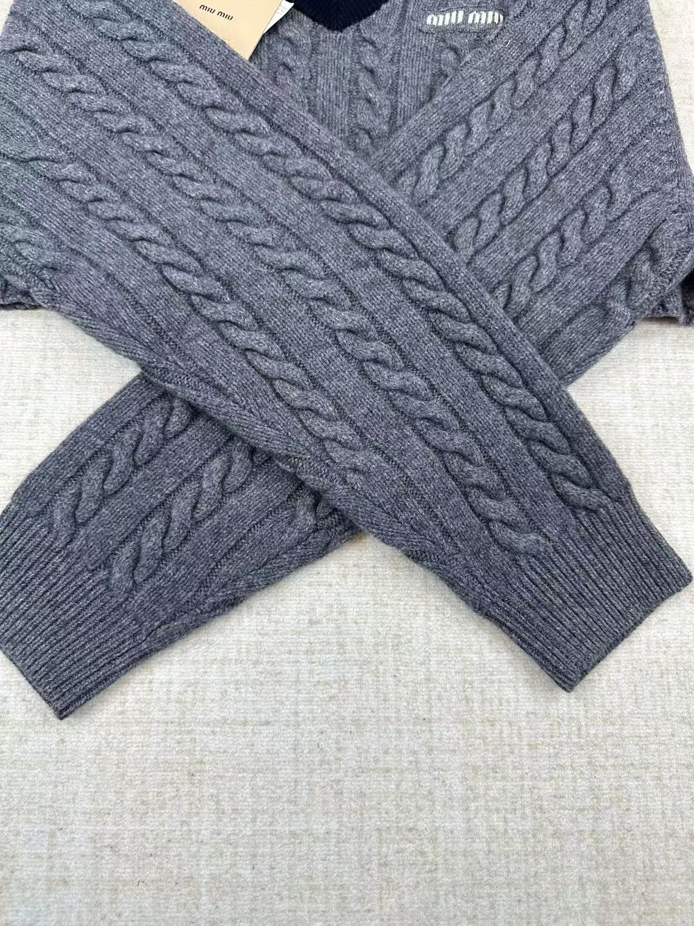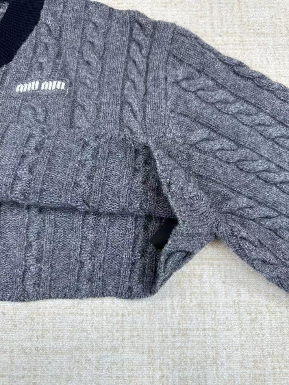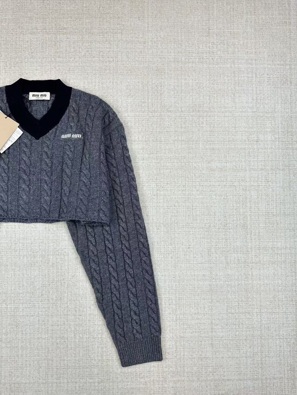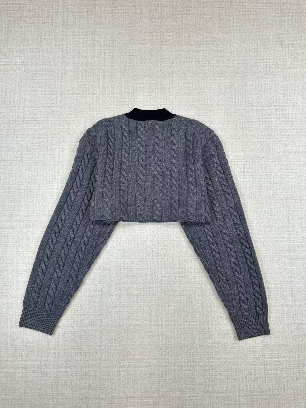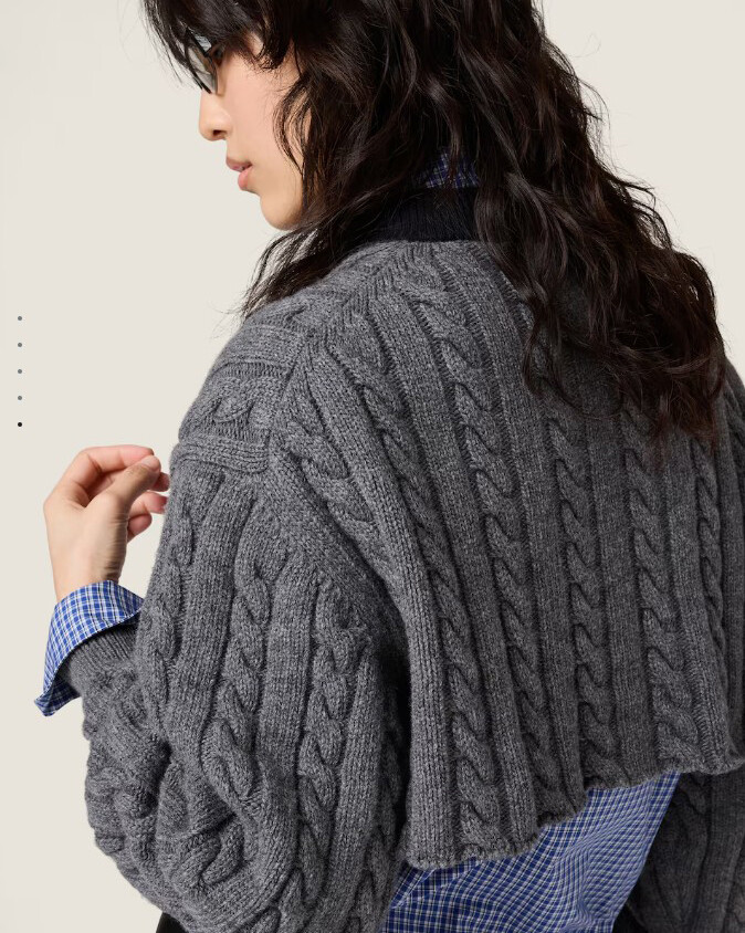두꺼운 V넥 케이블 패턴 크롭 스웨터 |