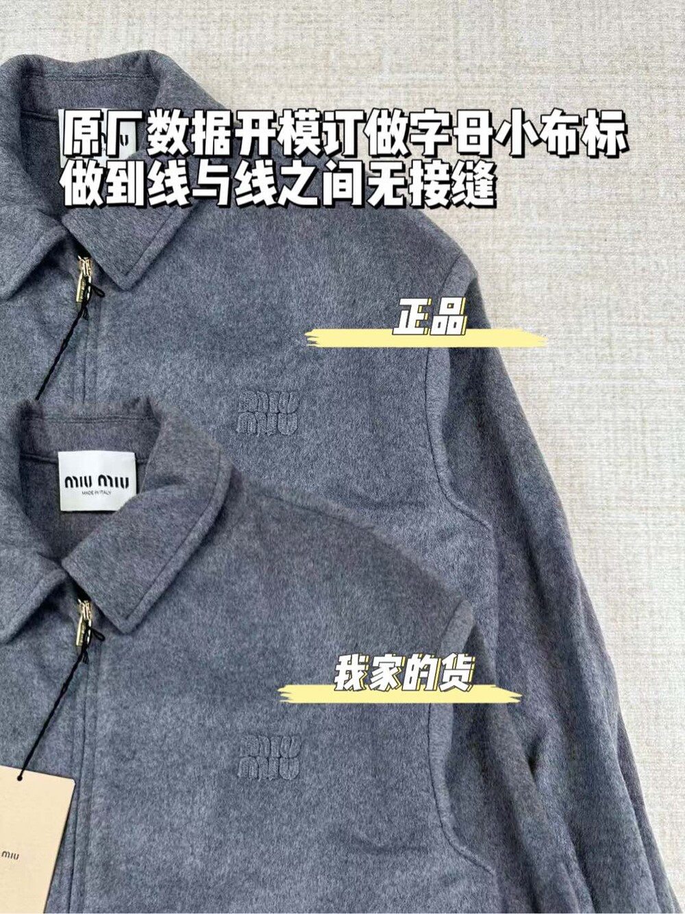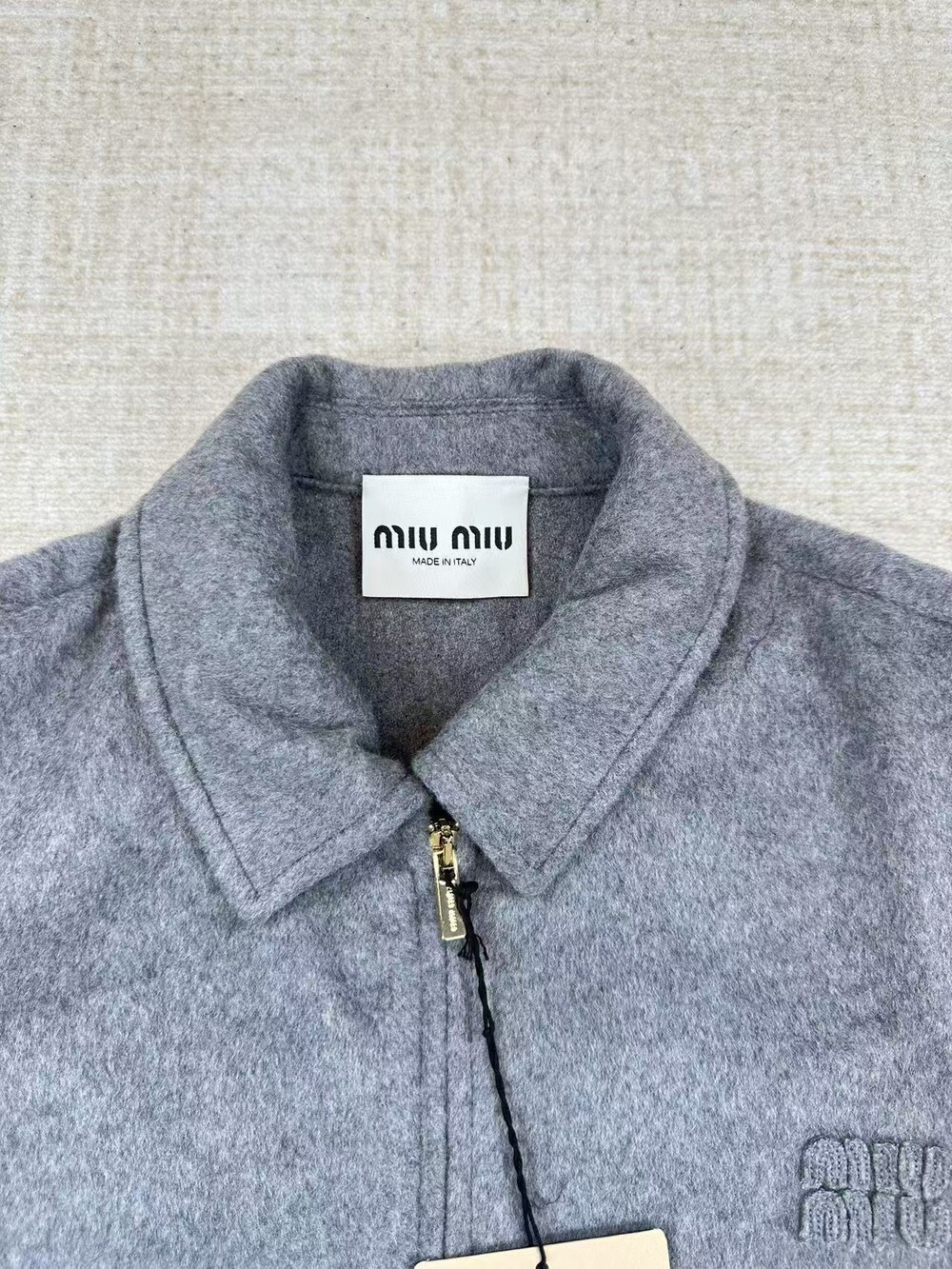 레터링 패치워크 울 캐시미어 집업 재킷