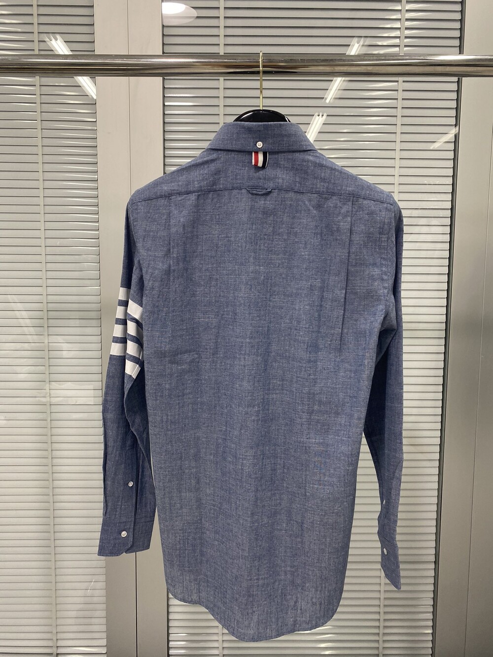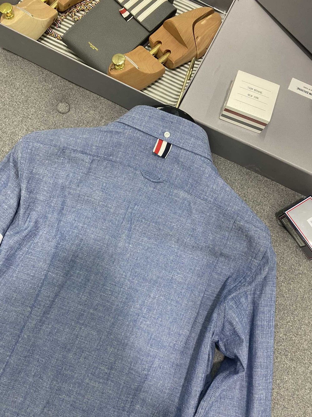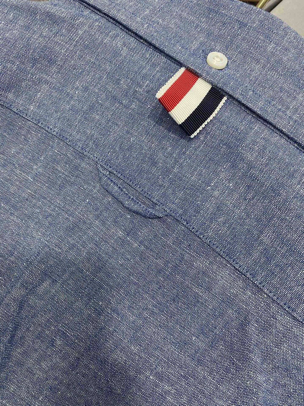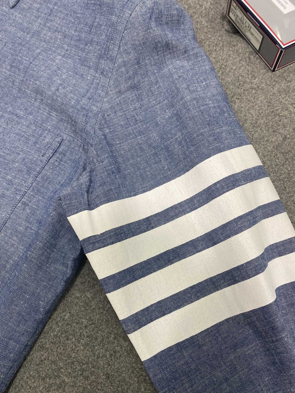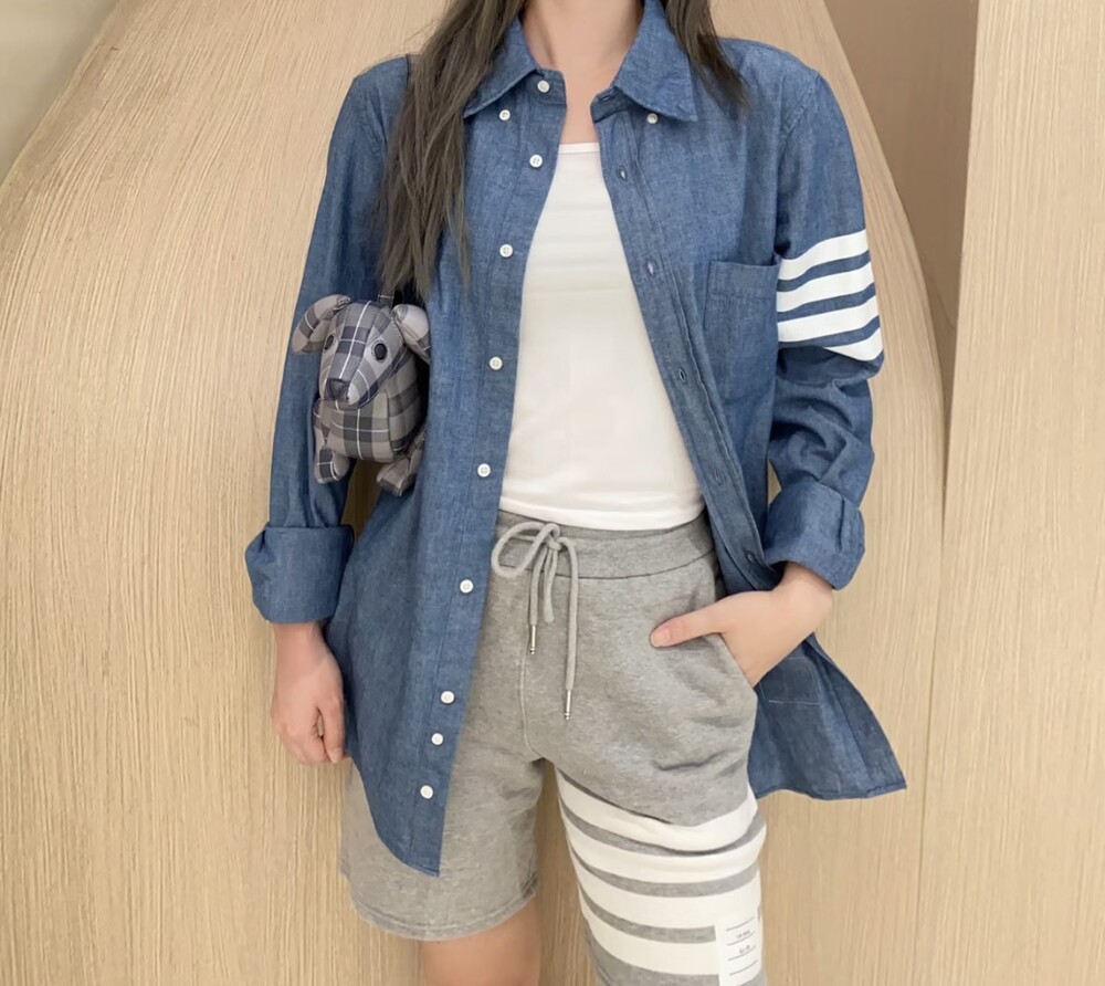 새롭게 맞춤 개발된 tb 데님 블루 셔츠 재킷이