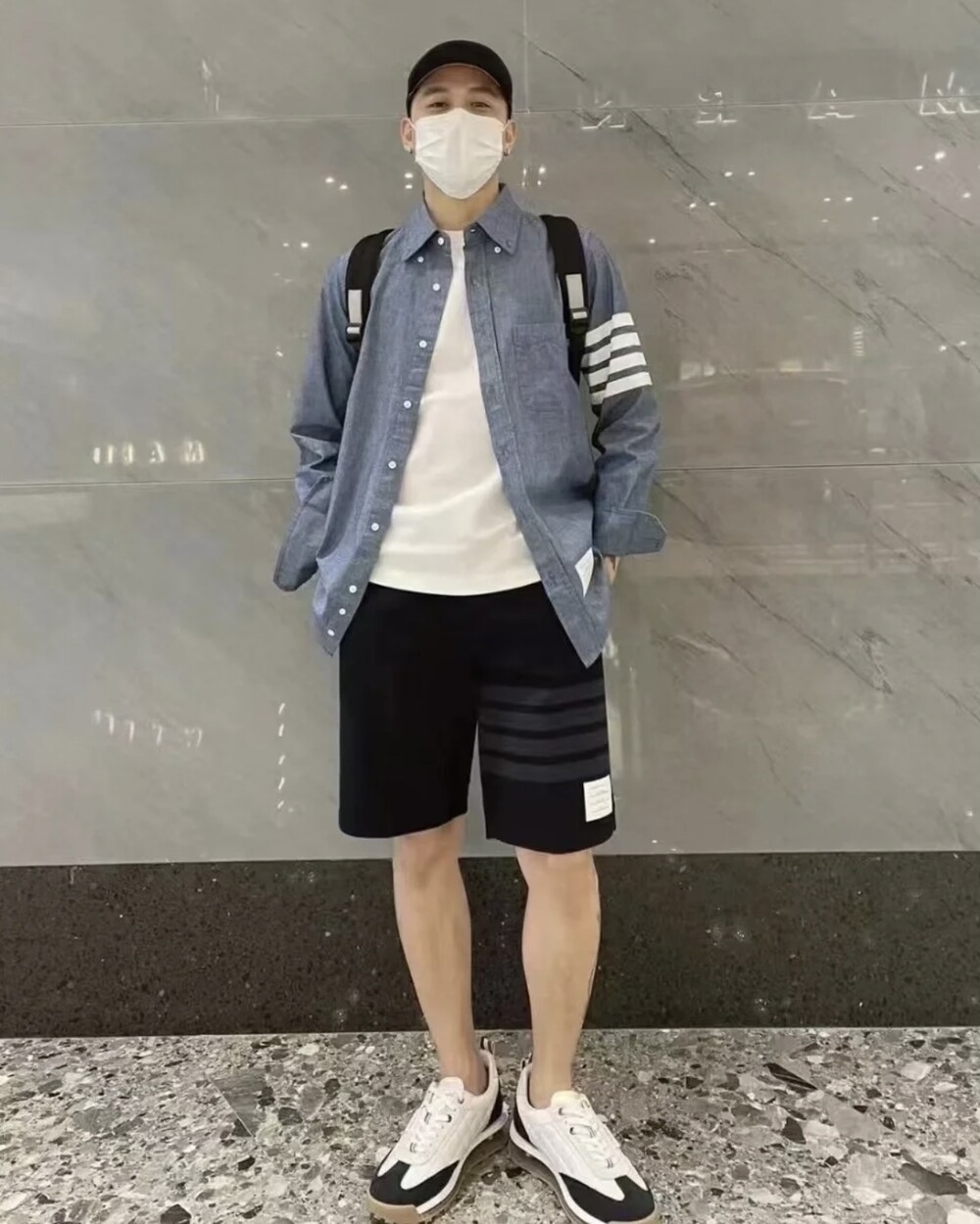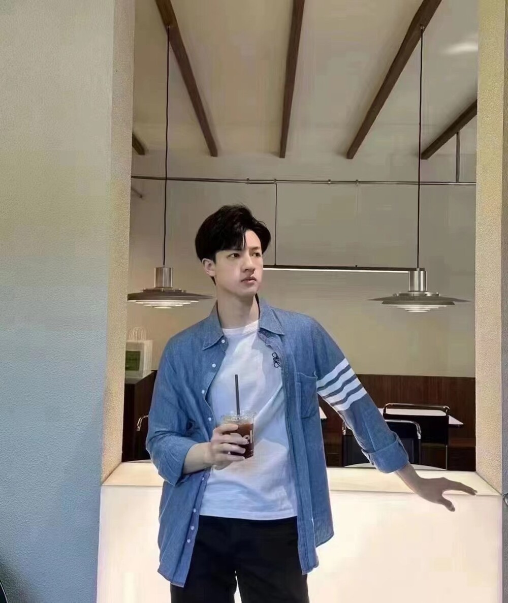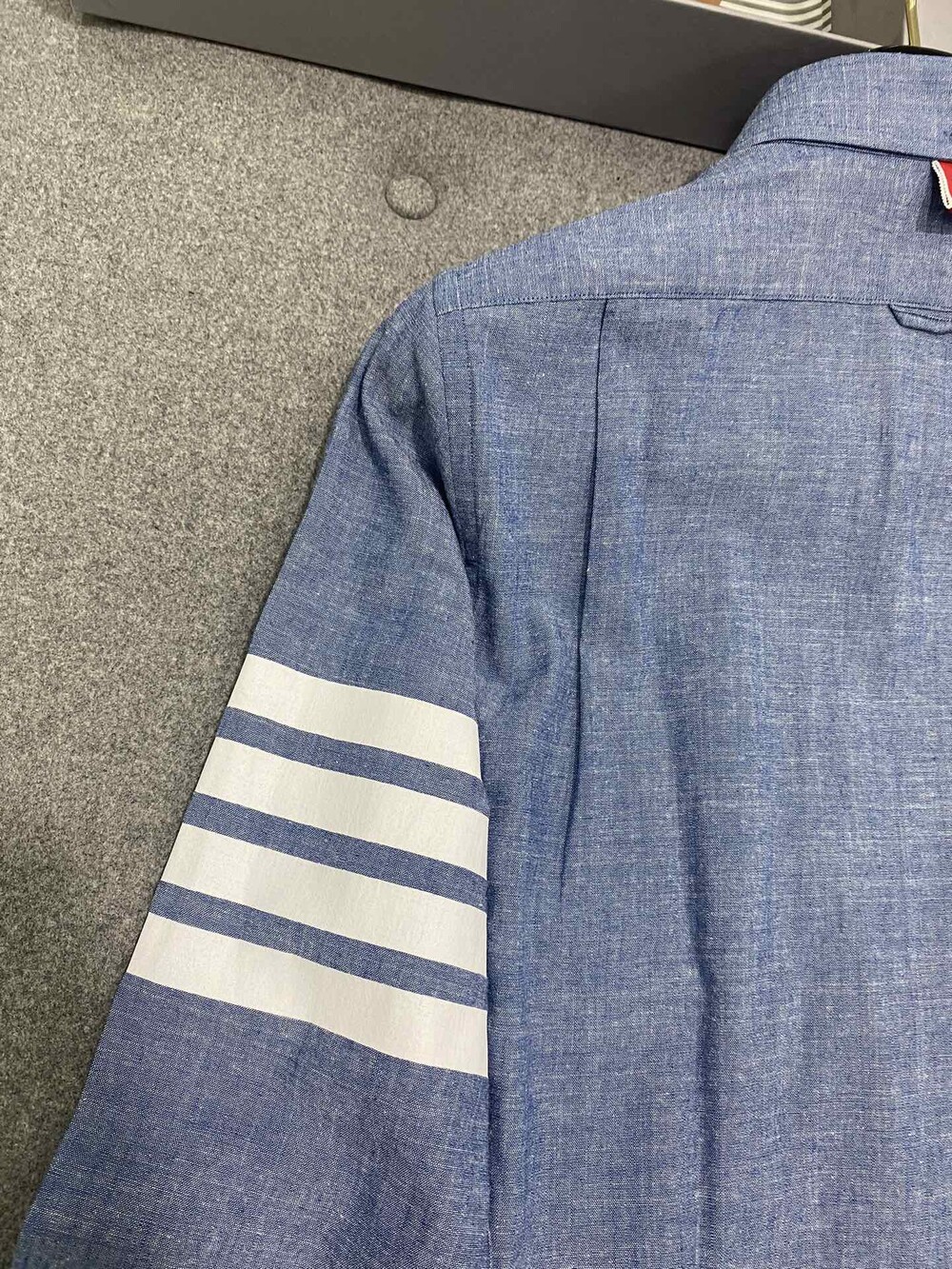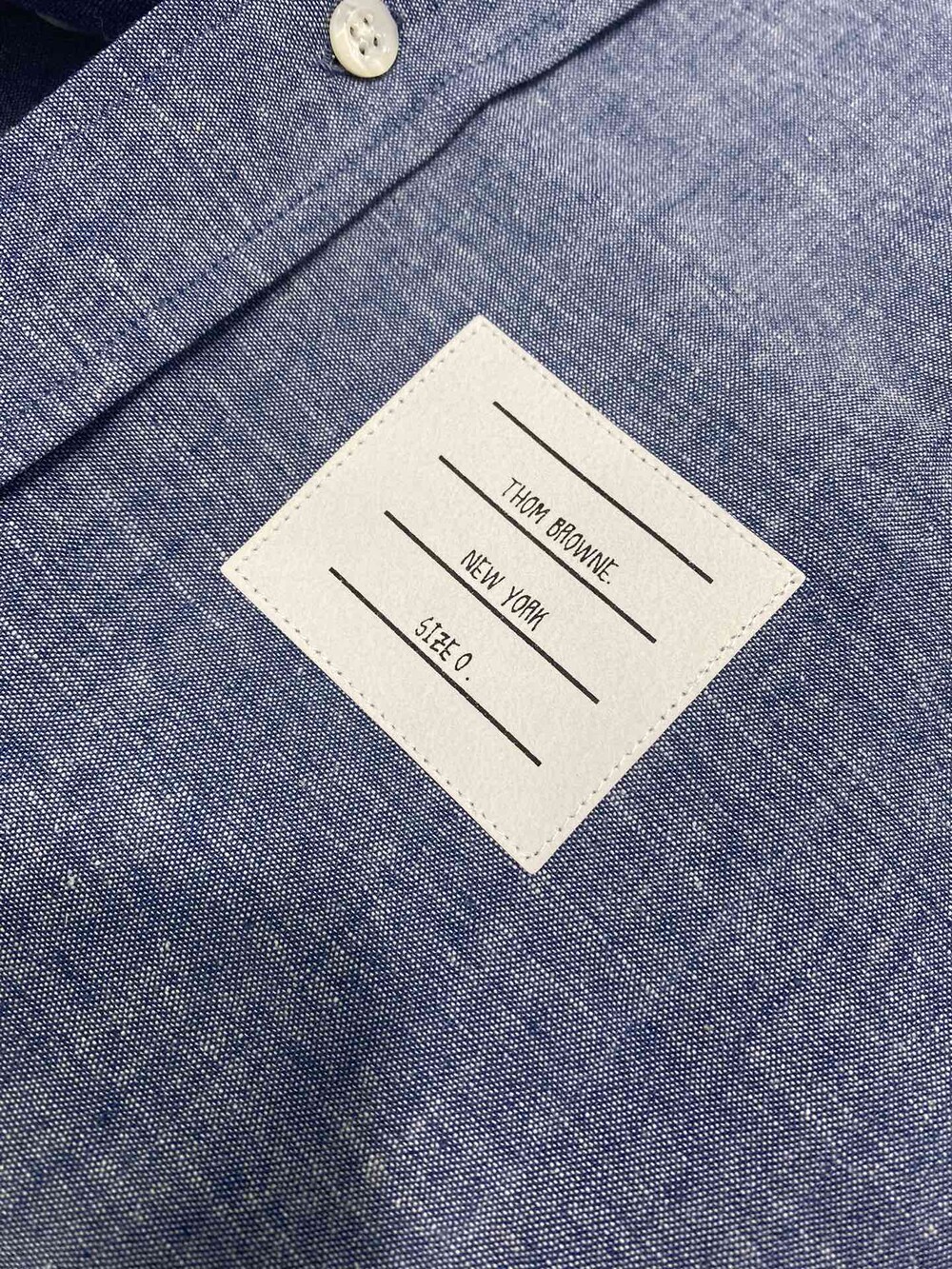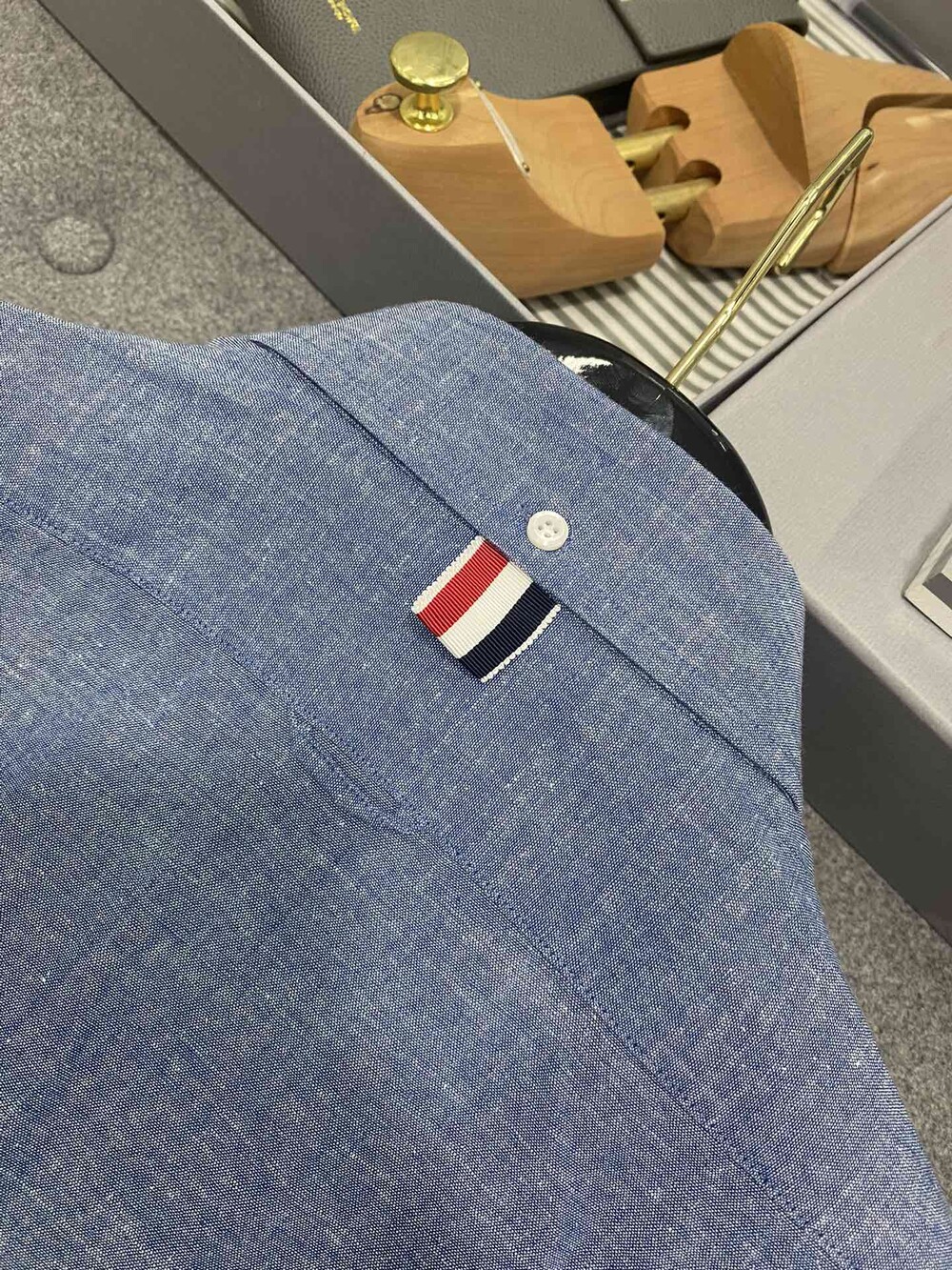 새롭게 맞춤 개발된 tb 데님 블루 셔츠 재킷이