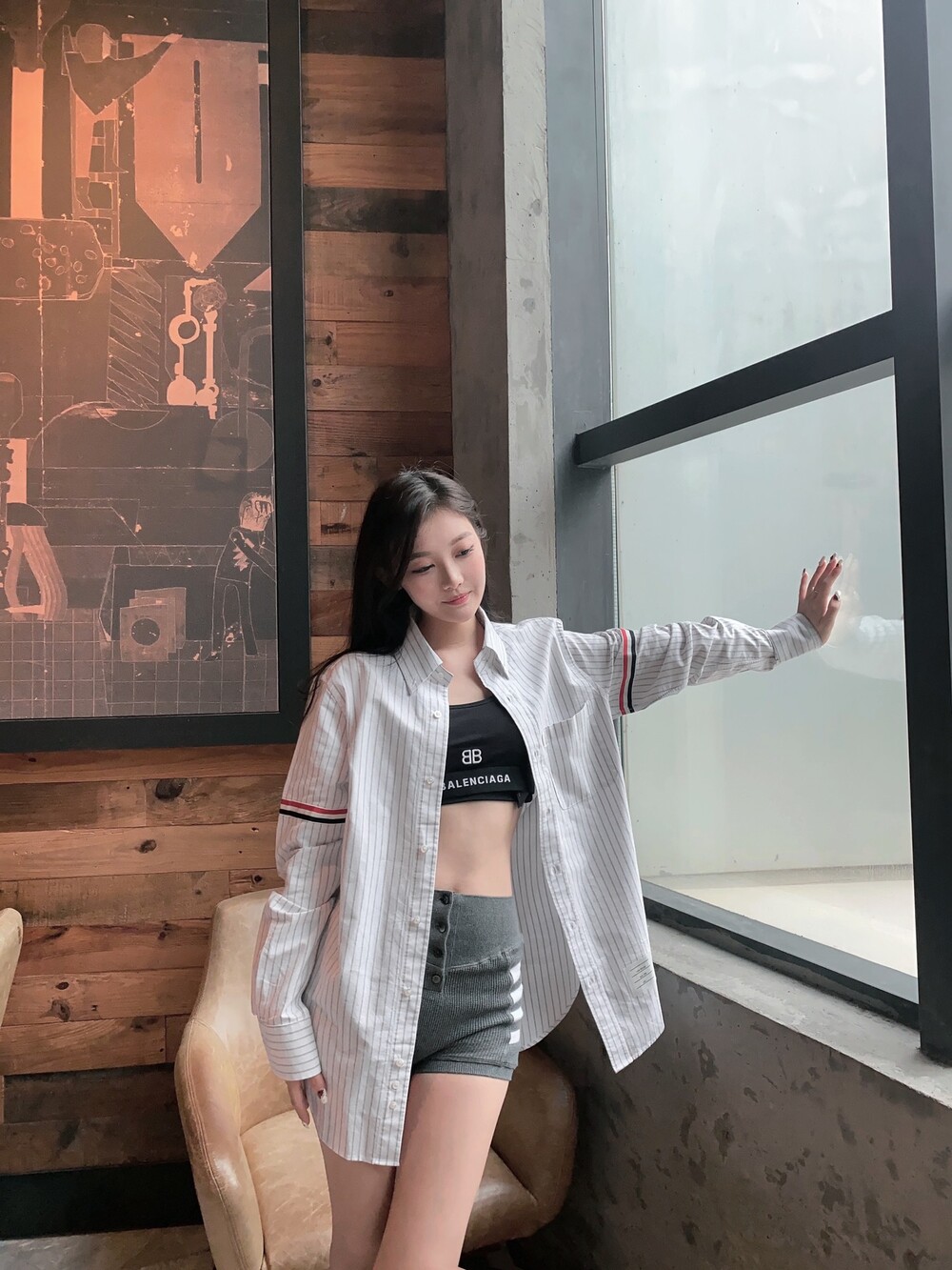 아주 클래식한 스트라이프 선염 셔츠에요~