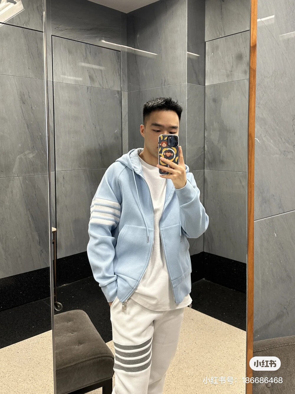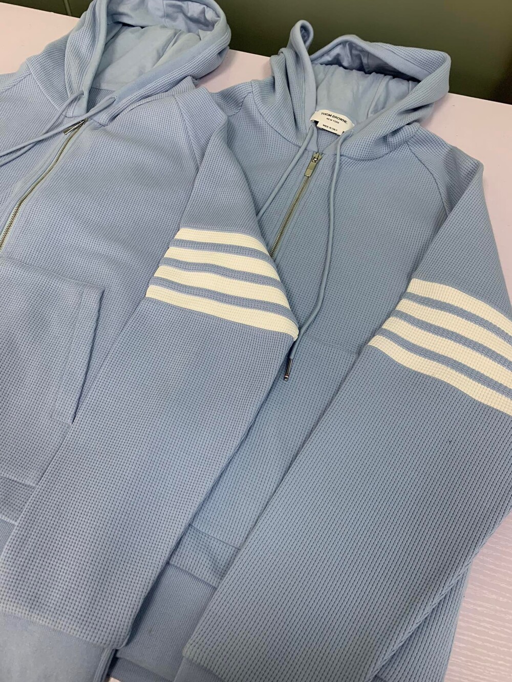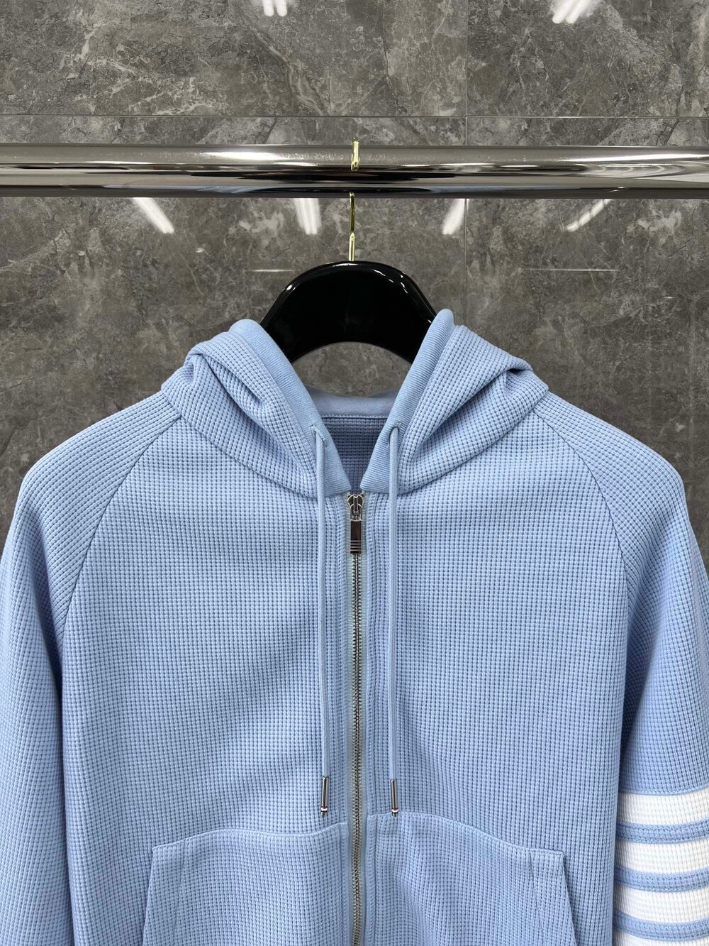 □사선 완장 후드 와플 집업□