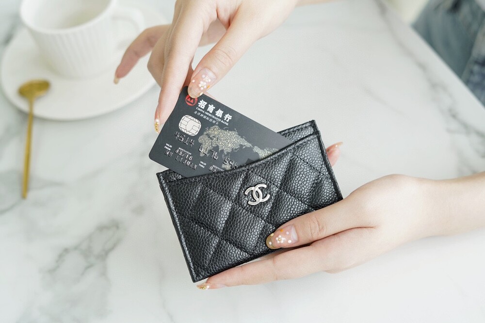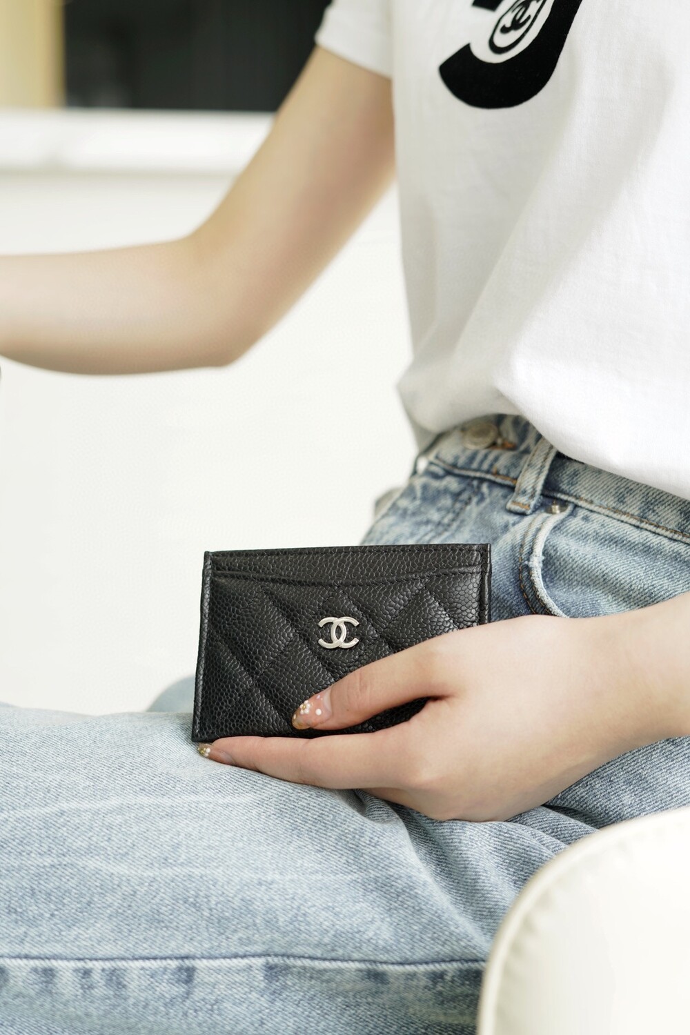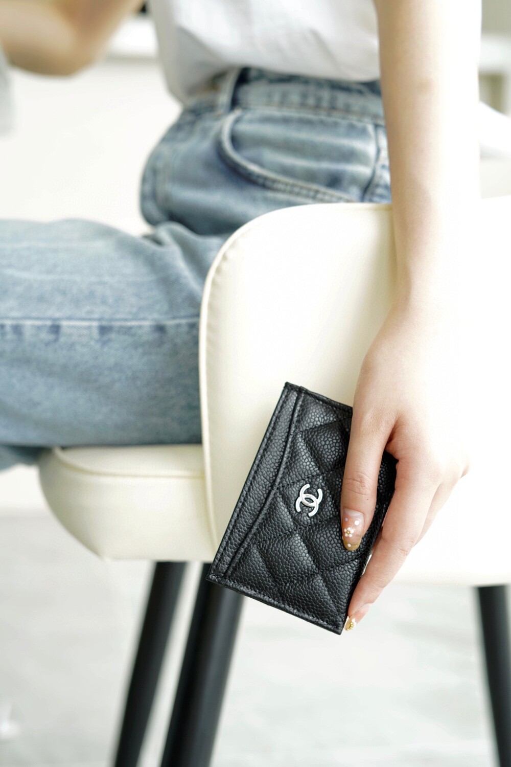 𝖢𝗅𝖺𝗌𝗌𝗂𝖼 𝖥𝗅𝖺𝗉 클래식 카드홀더 블랙 캐비어 실버🐂͝