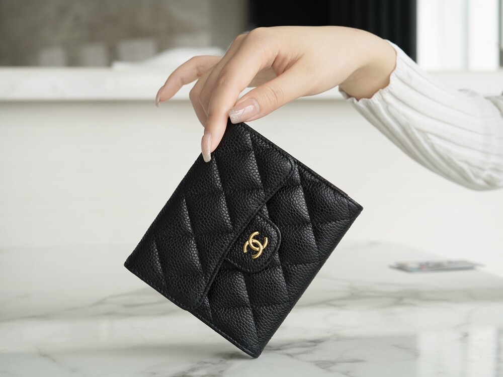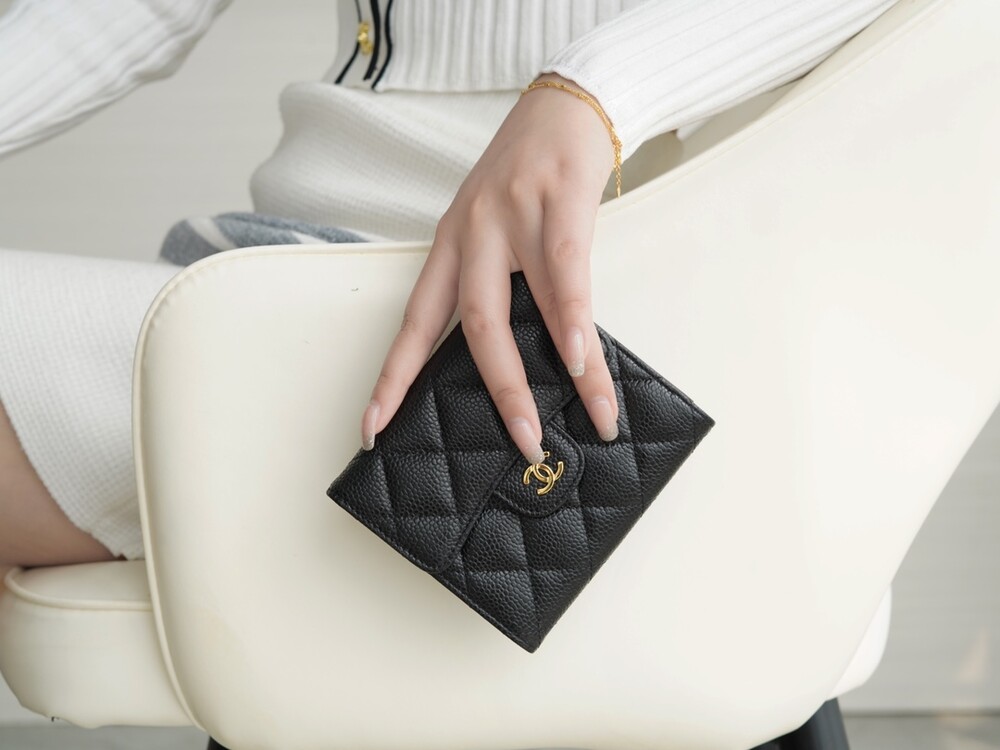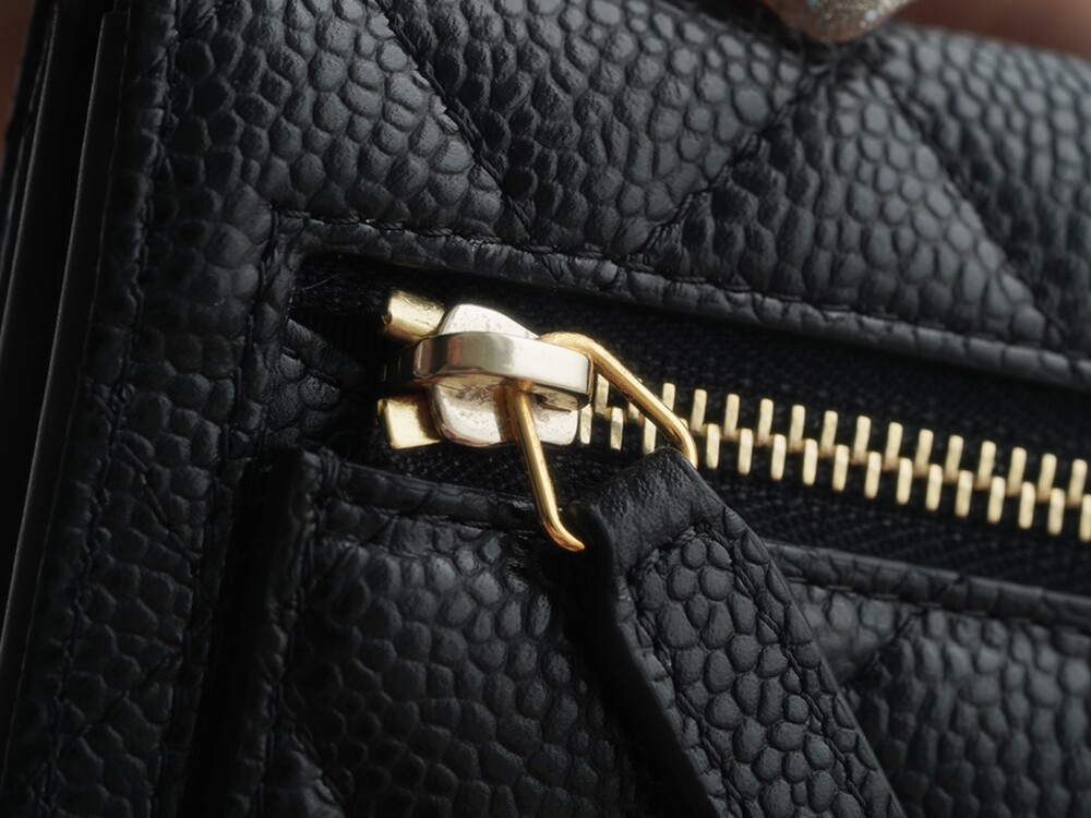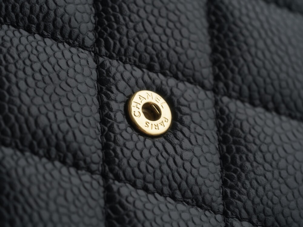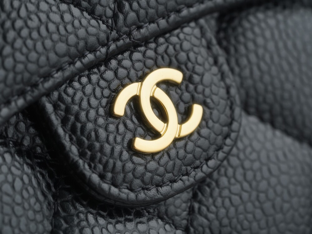 고급스러운 가죽에 메탈 더블 C 로고가 장식되어