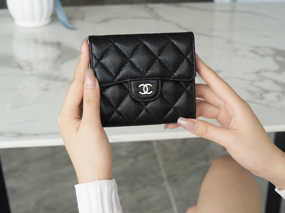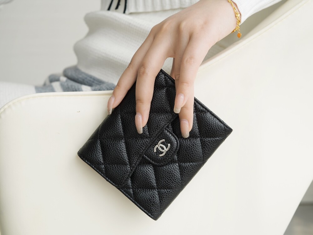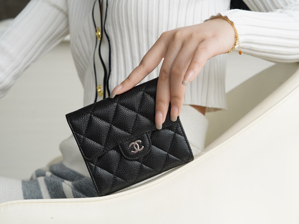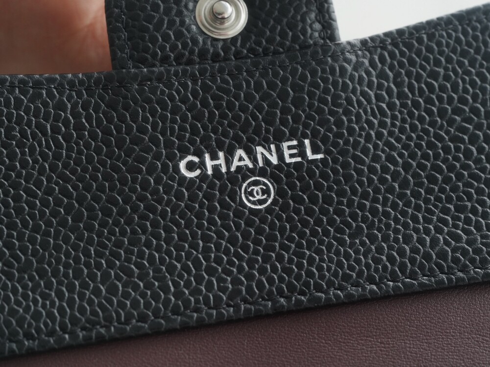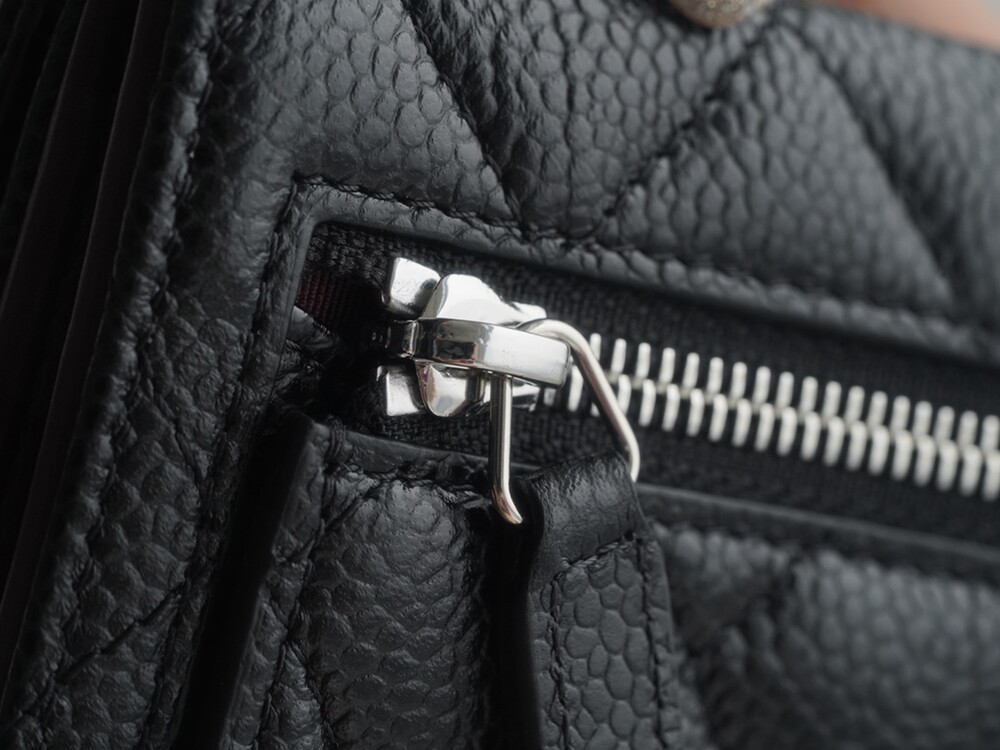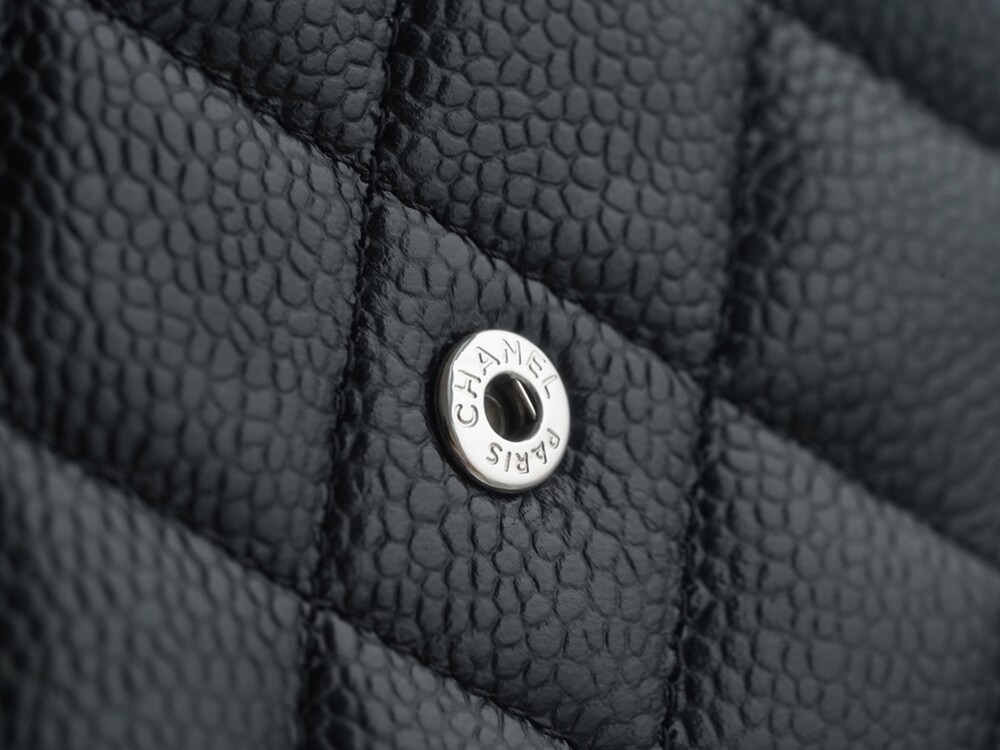 고급스러운 가죽에 메탈 더블 C 로고가 장식되어