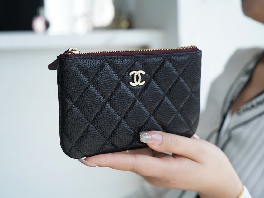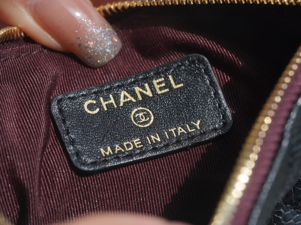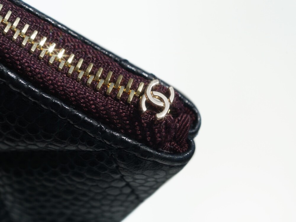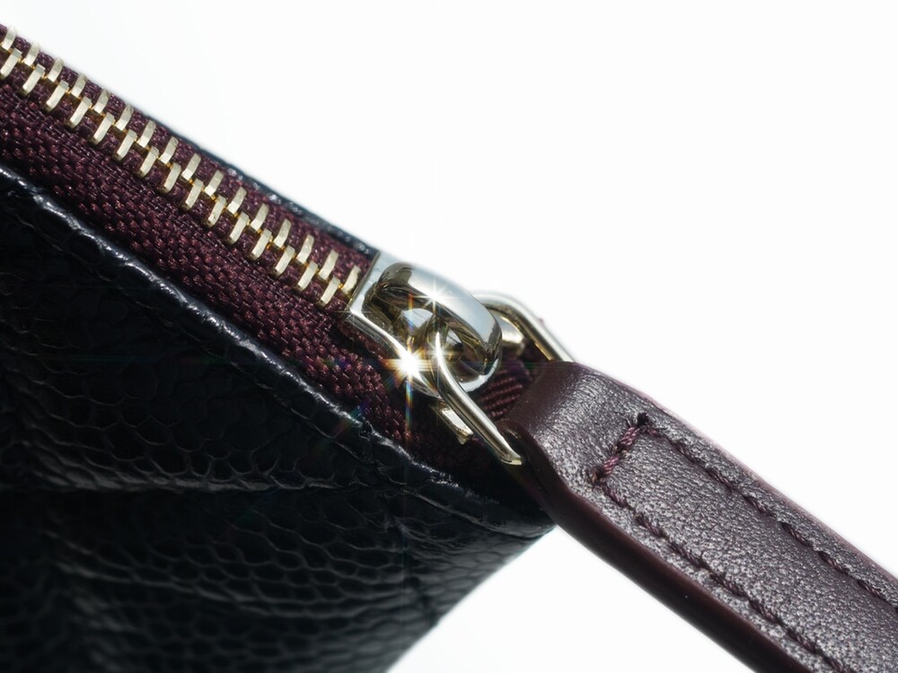 클래식 더블 C가 적용된 페블 송아지 가죽은