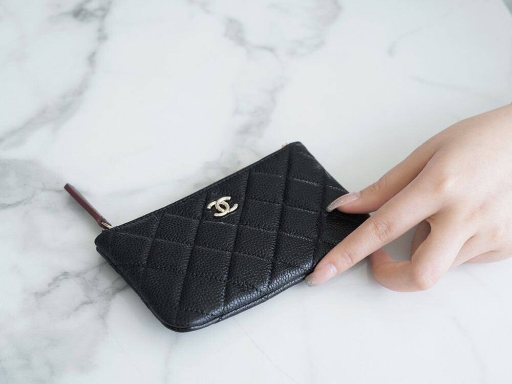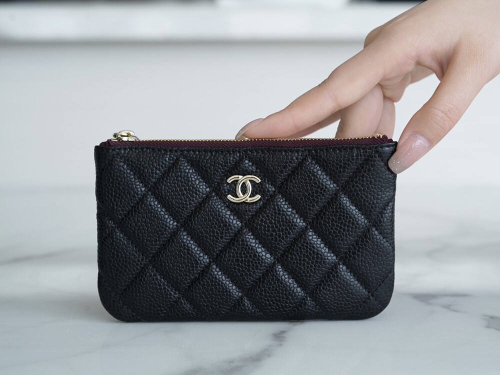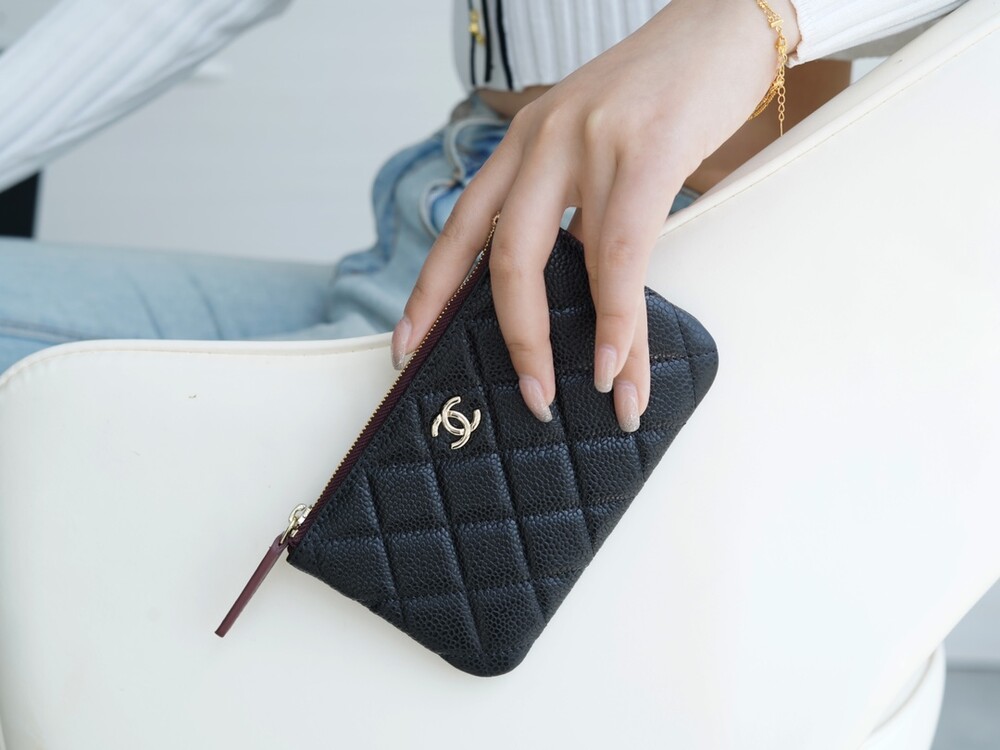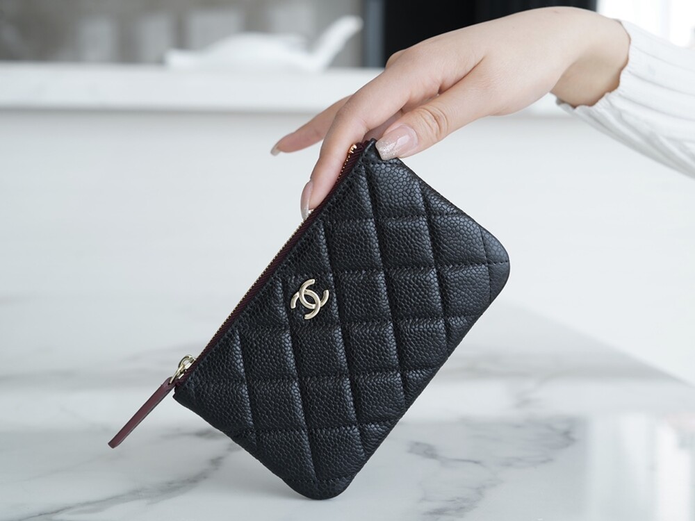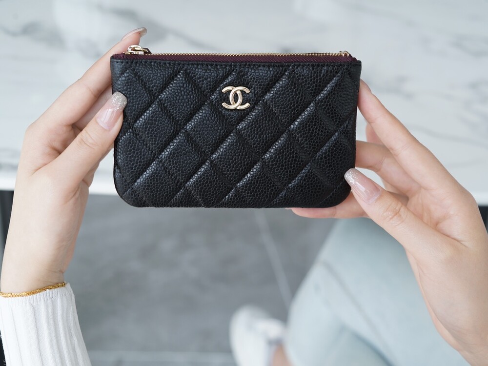 클래식 더블 C가 적용된 페블 송아지 가죽은