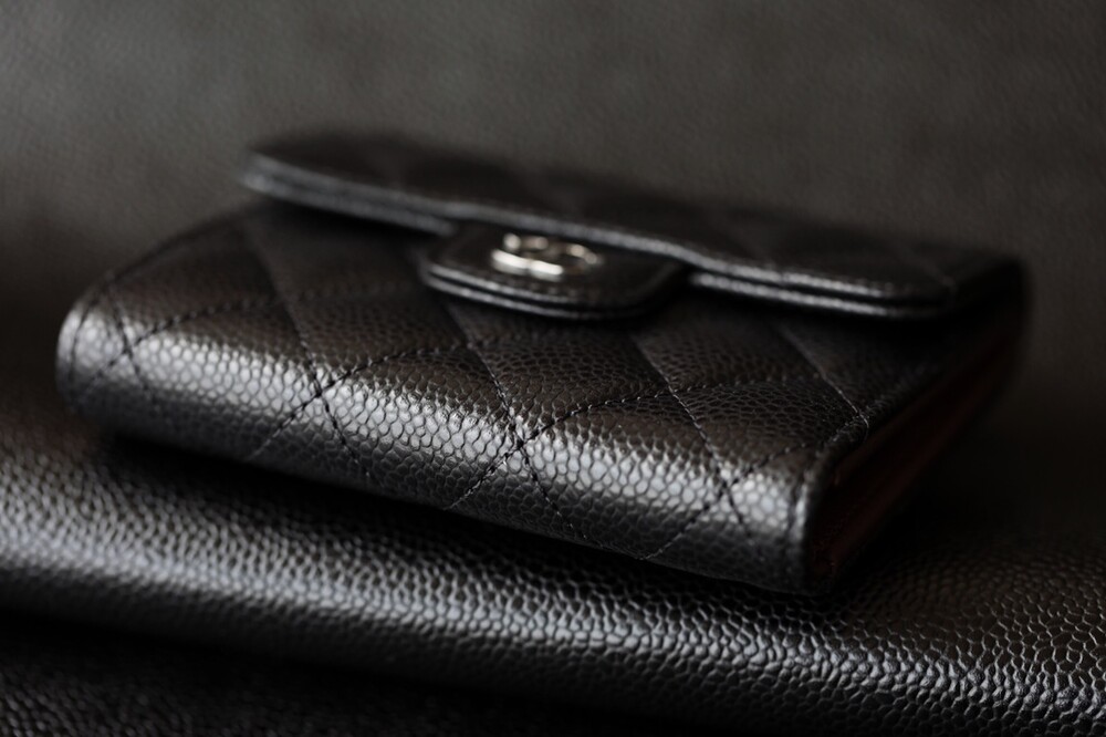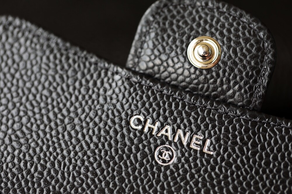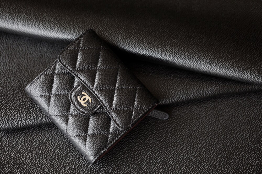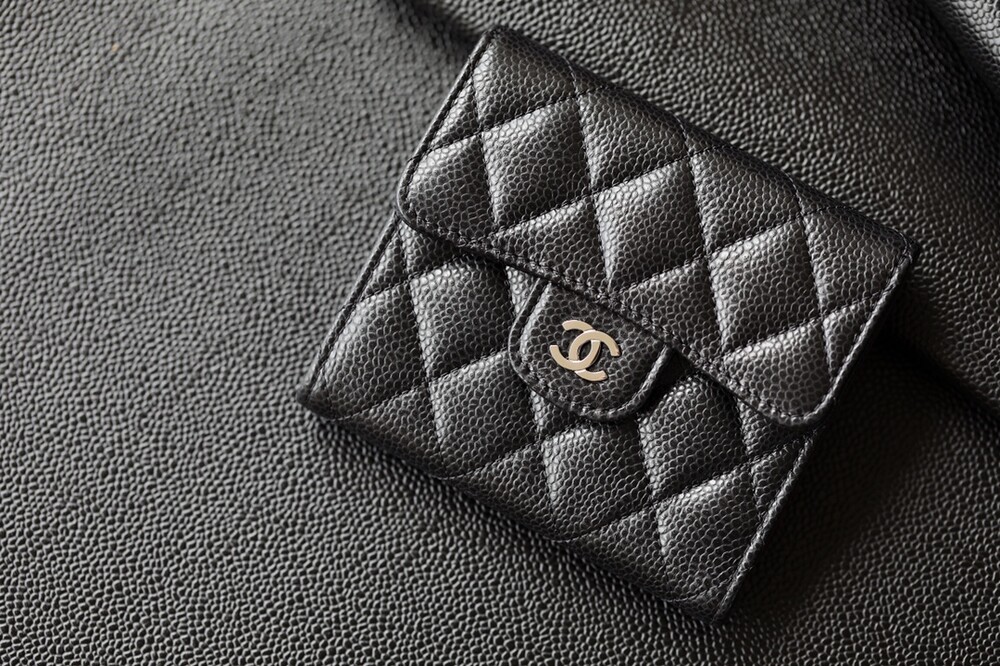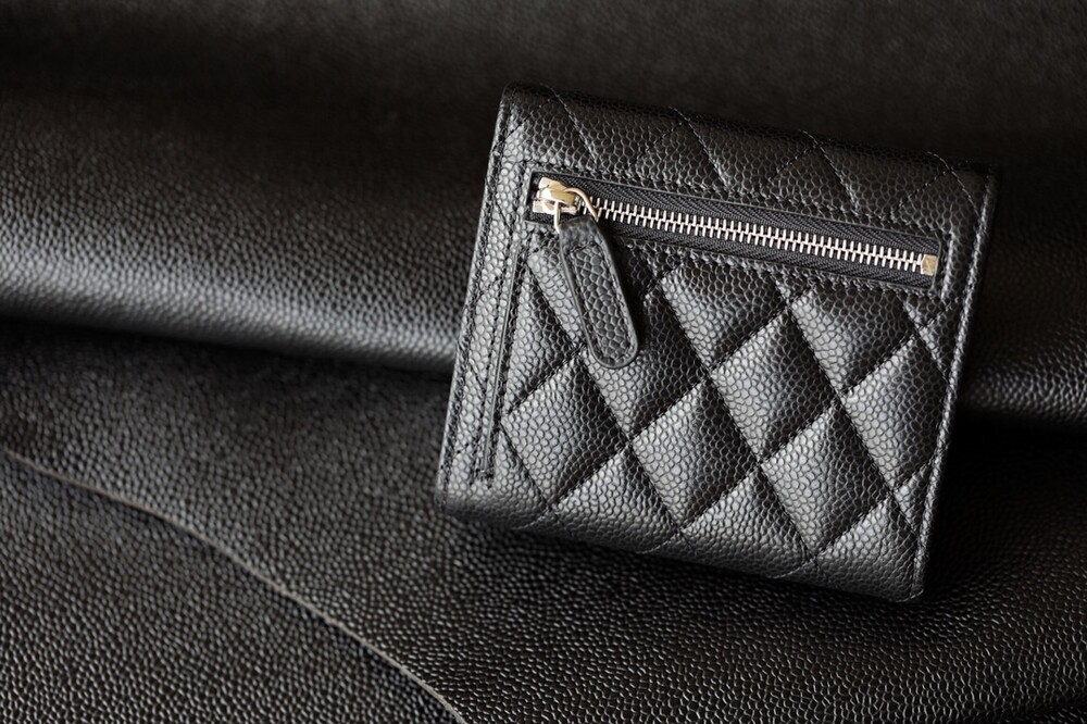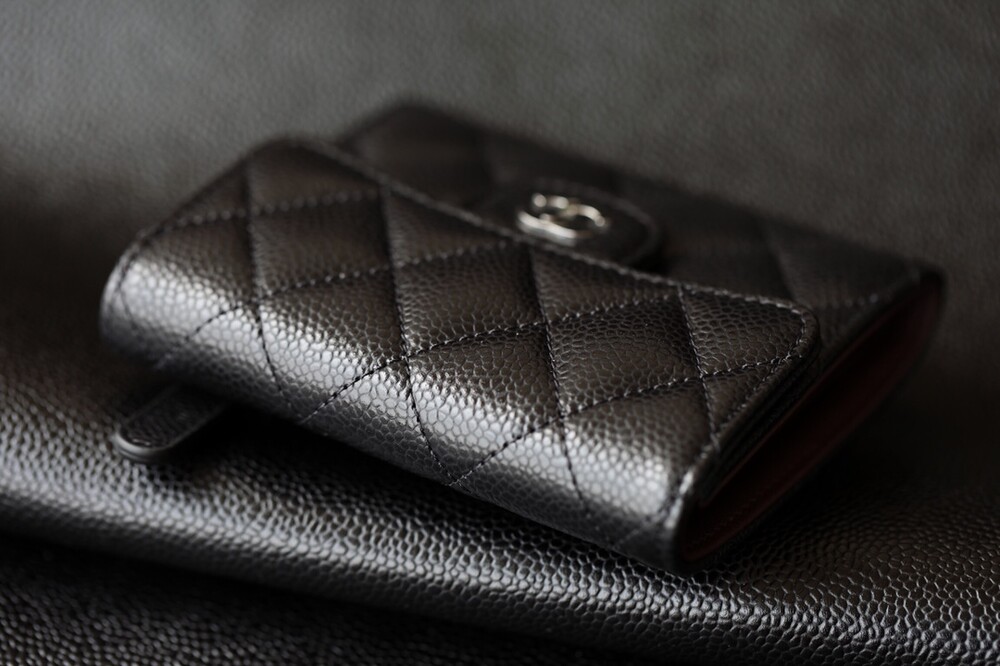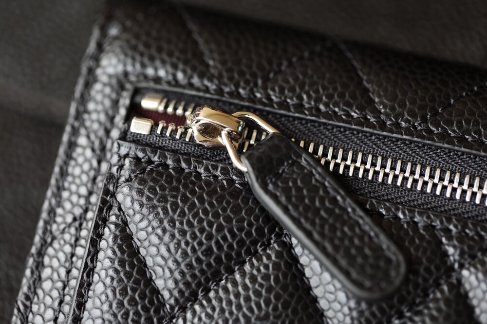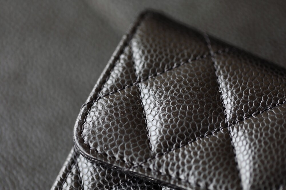 Cf 플랩 캐비어 볼 패턴 삼단 지갑