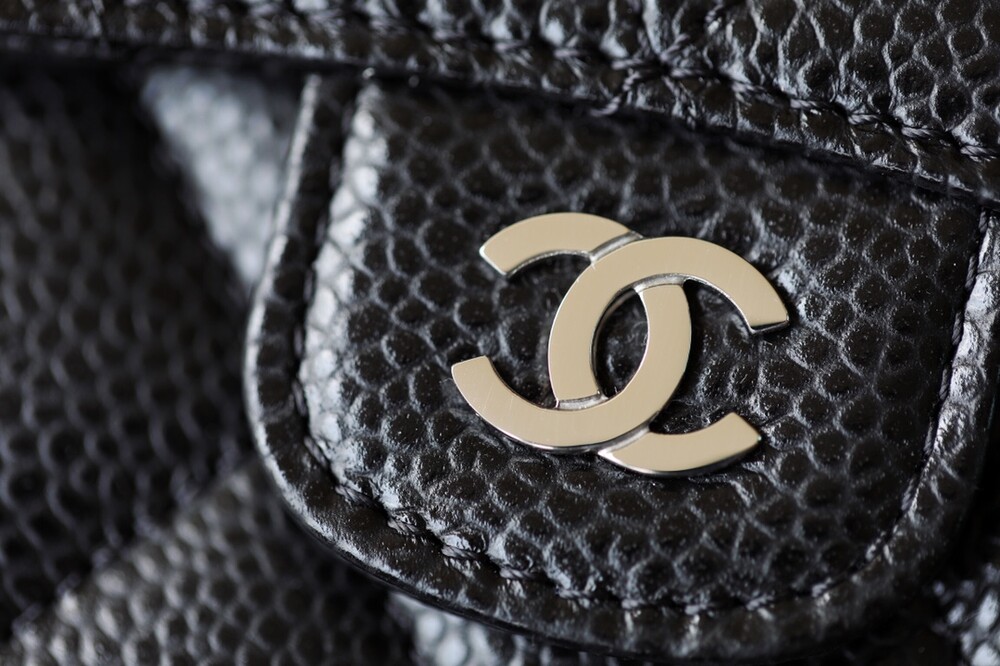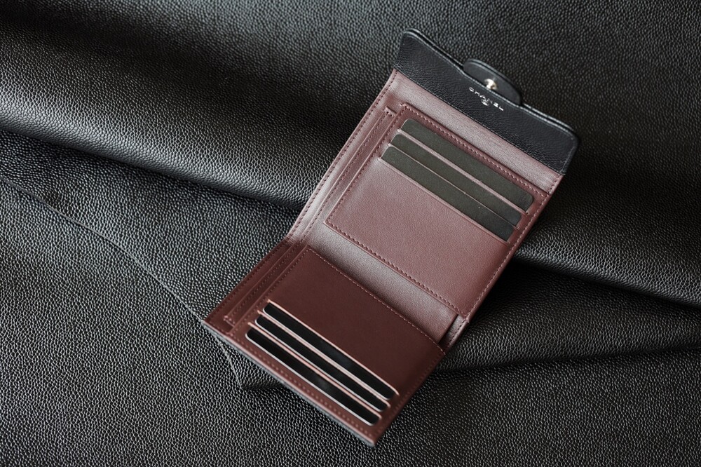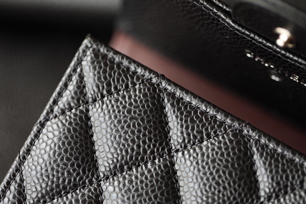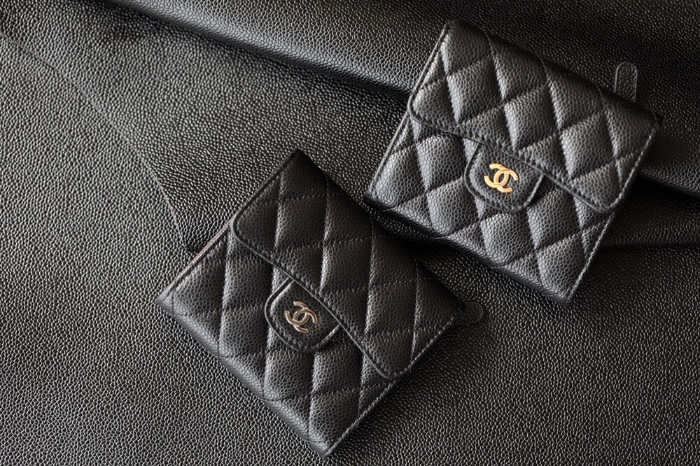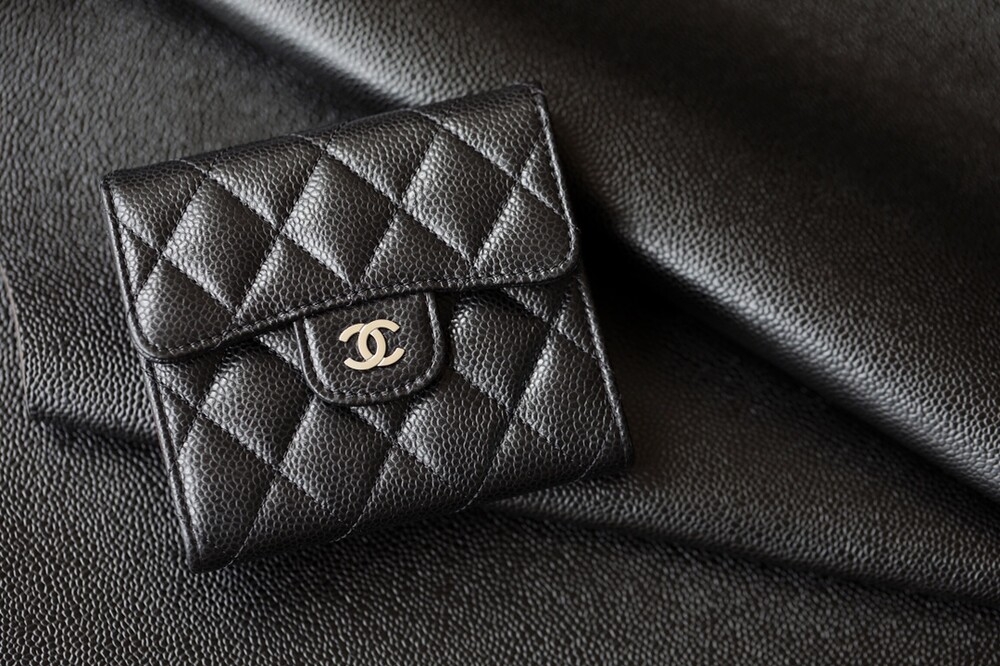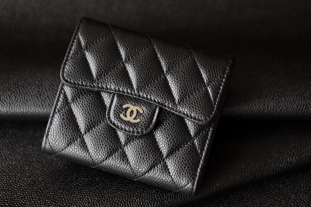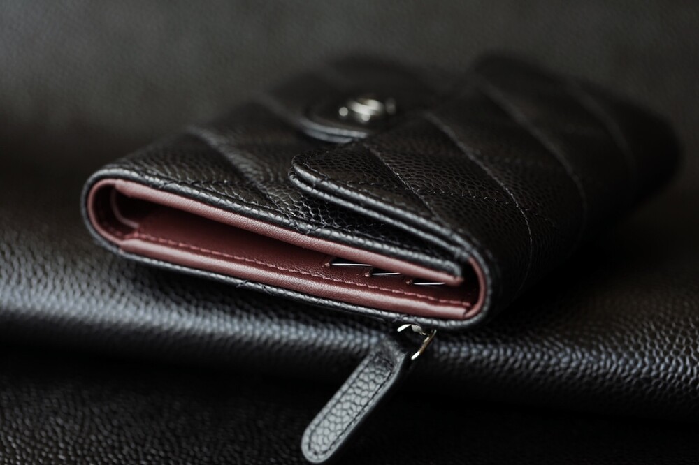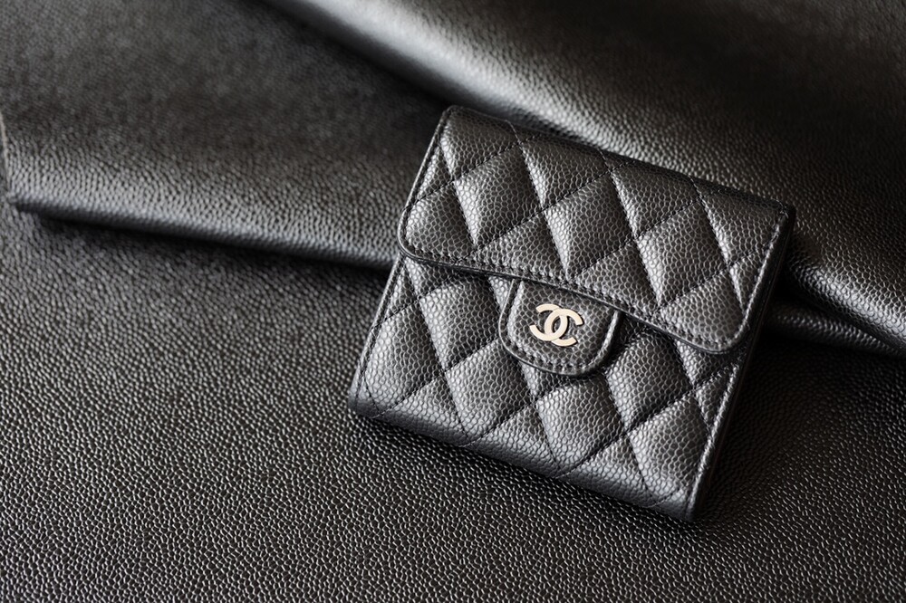 Cf 플랩 캐비어 볼 패턴 삼단 지갑